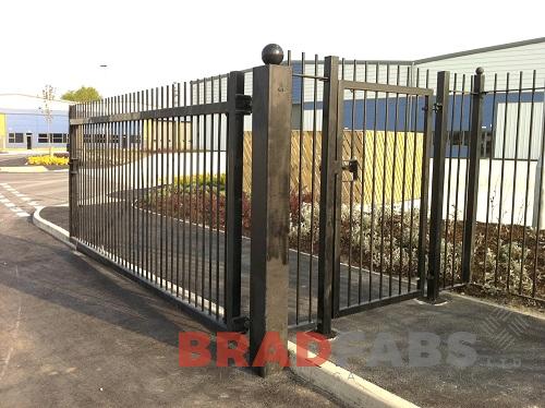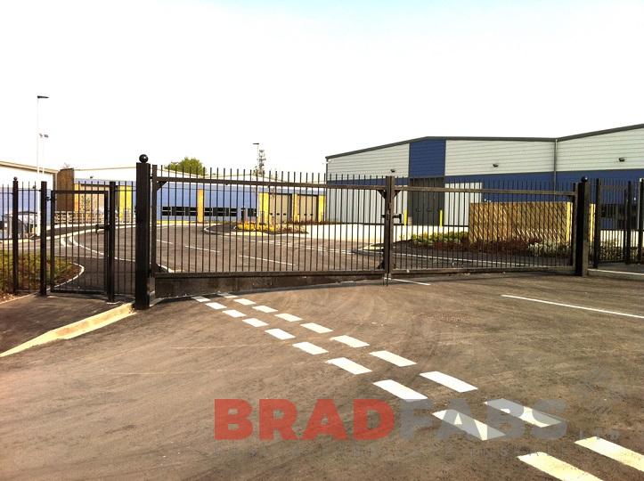 Mild steel and galvanised black bespoke gates for a commercial property by Bradfabs