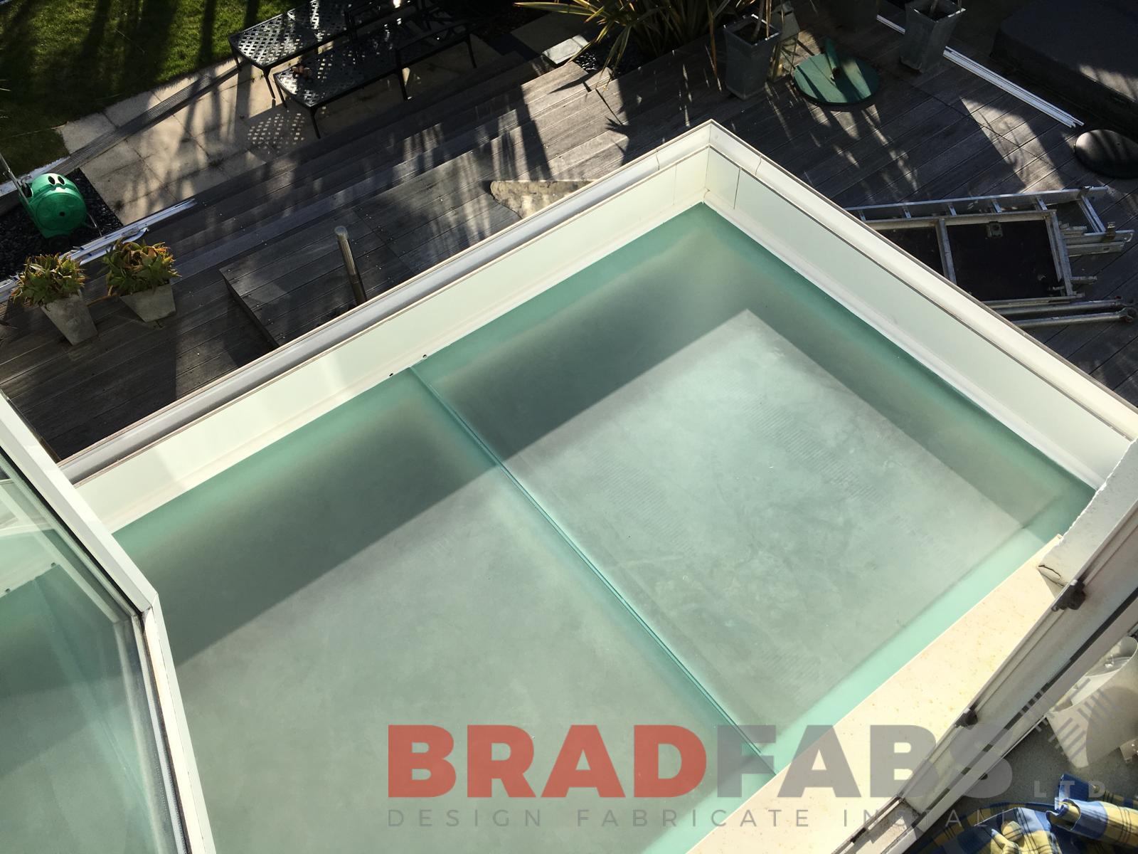 Bradfabs installed a replacement balcony for a customer, however, on this occasion they wanted to let as much light in as possible downstairs, hence the addition of a this solid glass floor, flooding the light in
