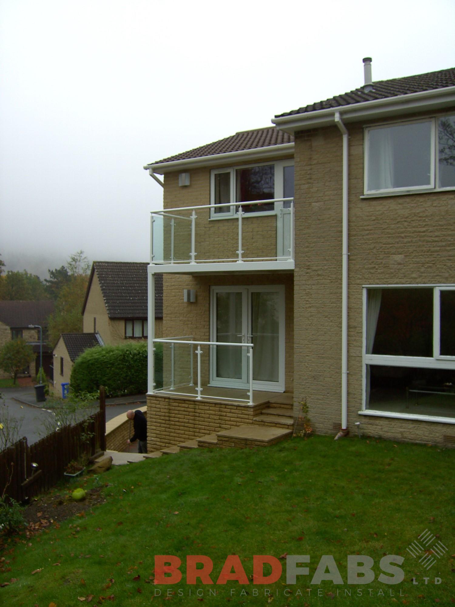 This 2 tier balcony structure fitted at a domestic property giving extra living space to both upstairs and down stairs. The white powder coated steel matches the rest of the UPVC on the property. Designed, Delivered and fitted in North Yorkshire, UK.