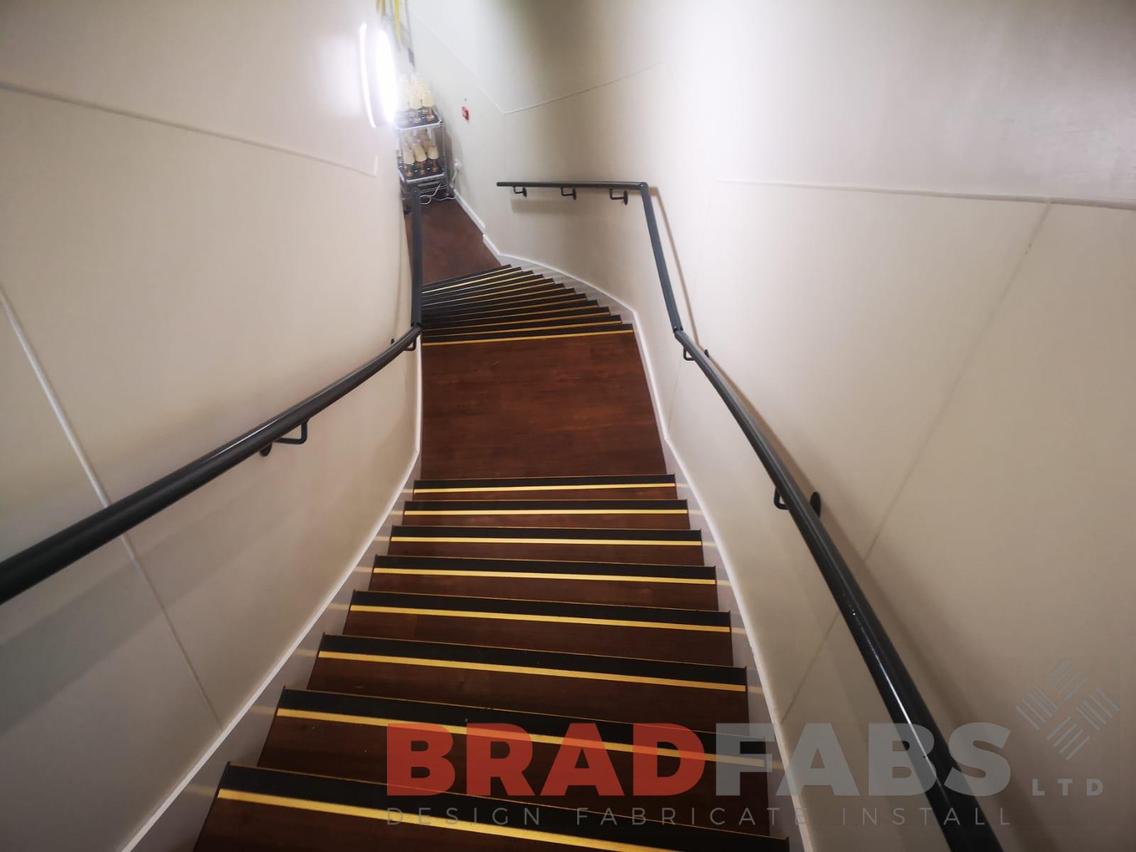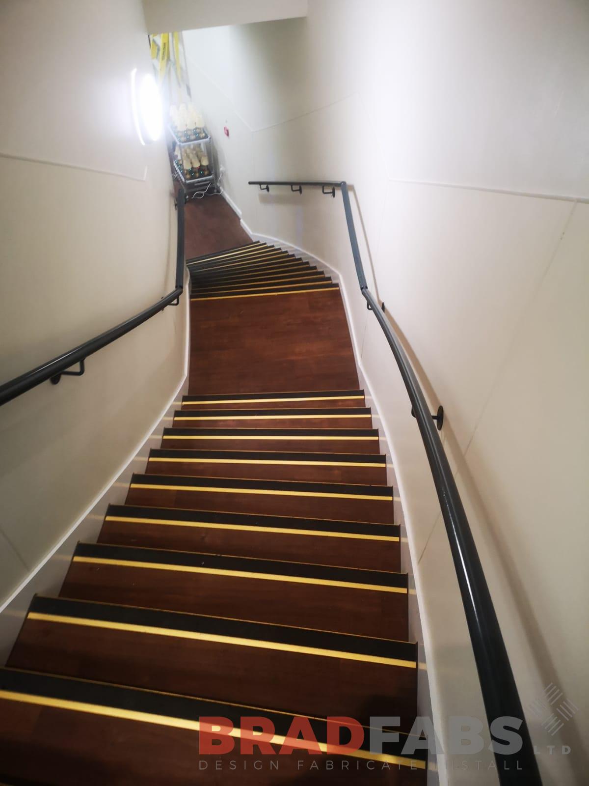 This was a project for a commercial property, curved staircase with wall mounted mild steel and powder coated handrails to either side