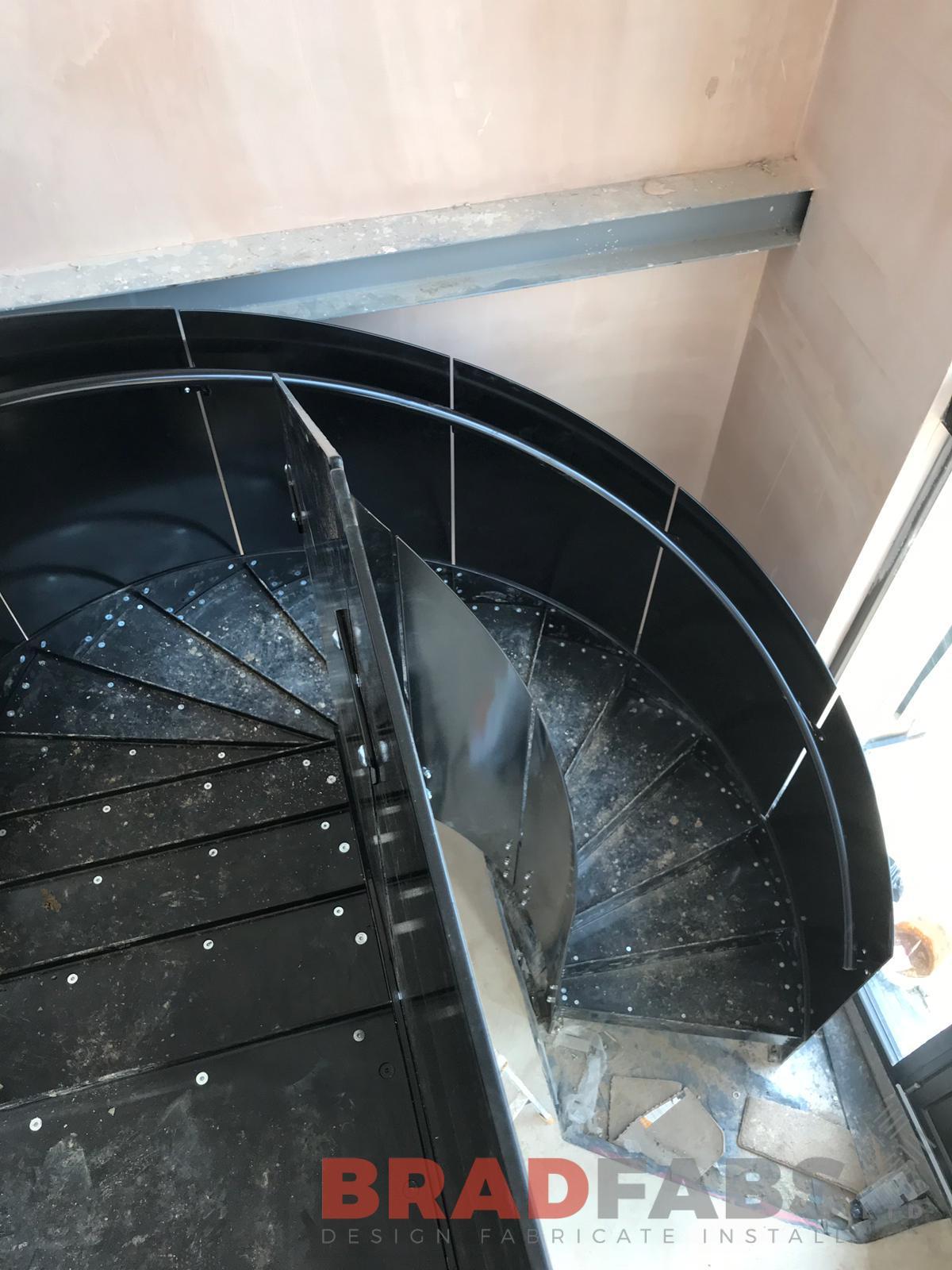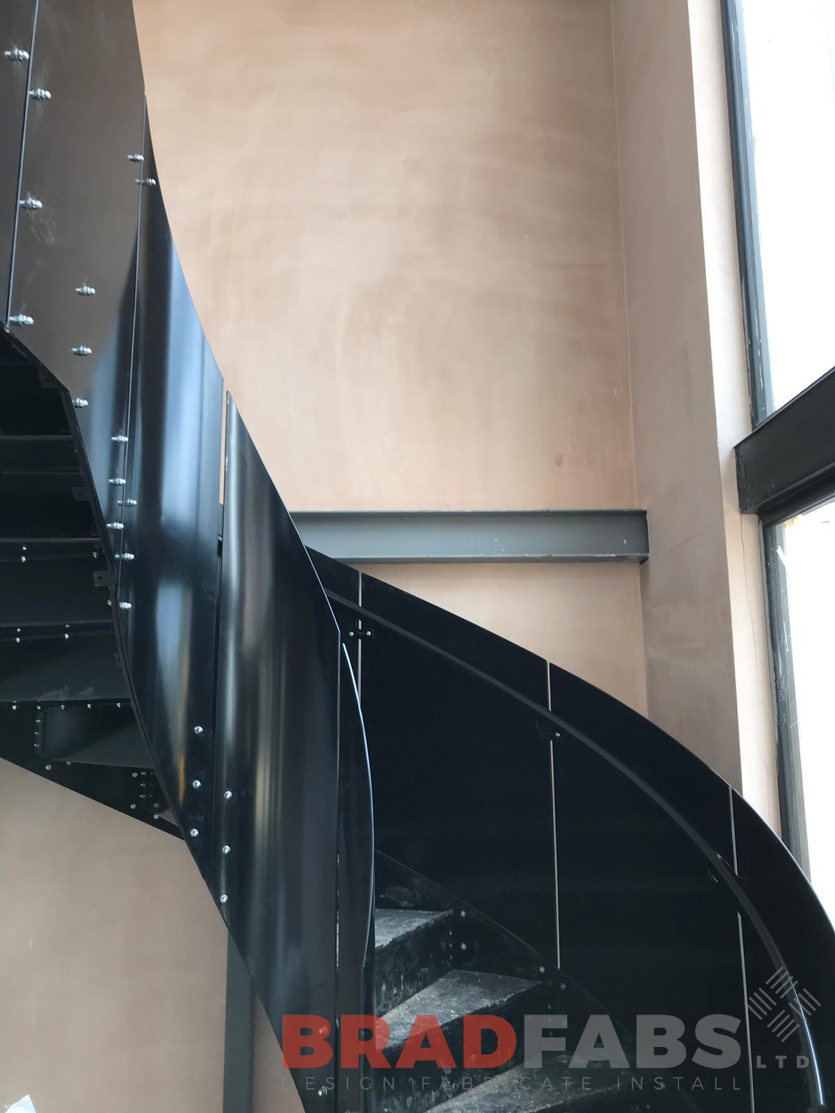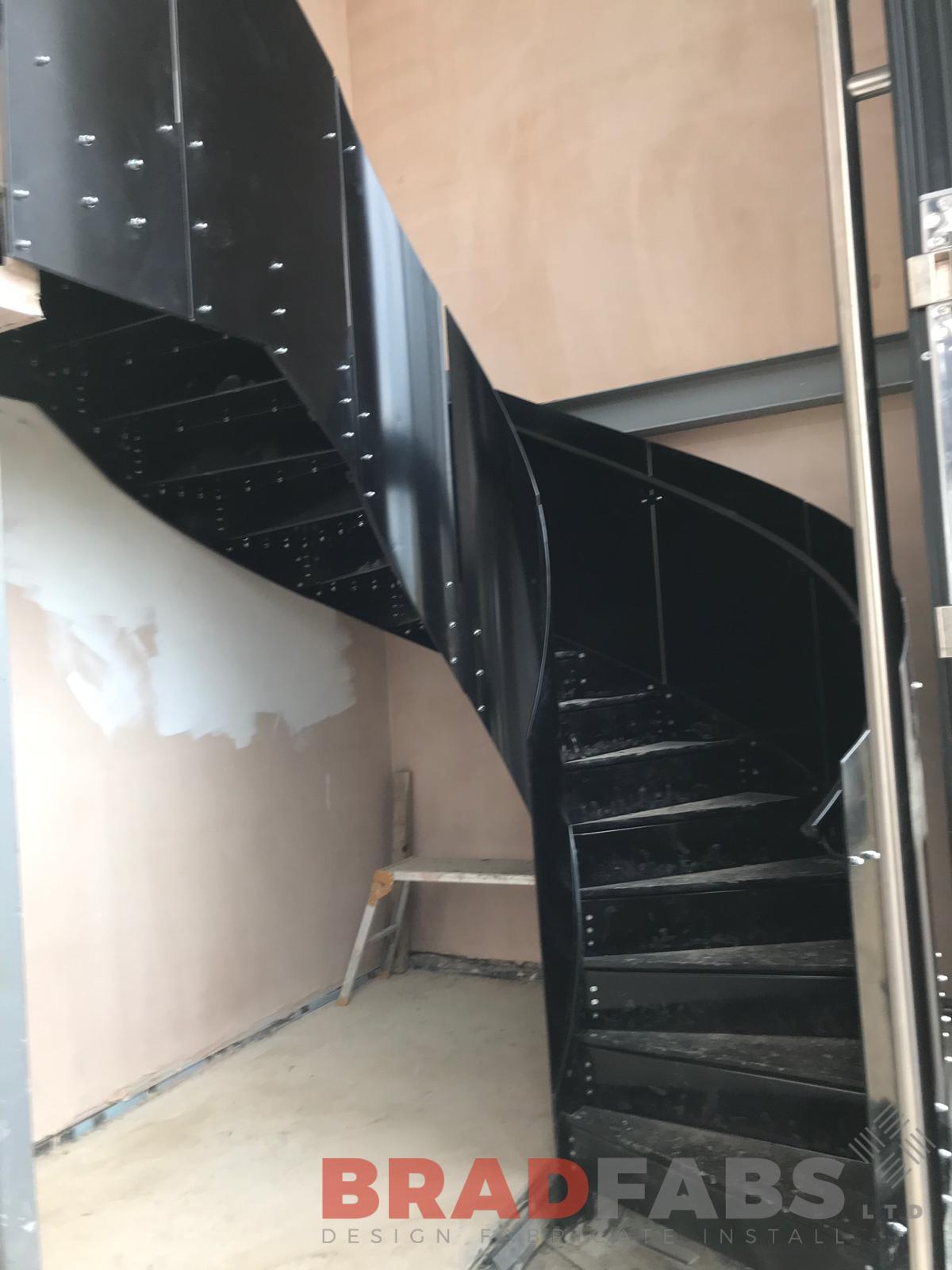 A stunning Helix in the making! Our company designed, supplies and installed this large Helical stair manufactured from mild steel and finished in a powder coated satin black