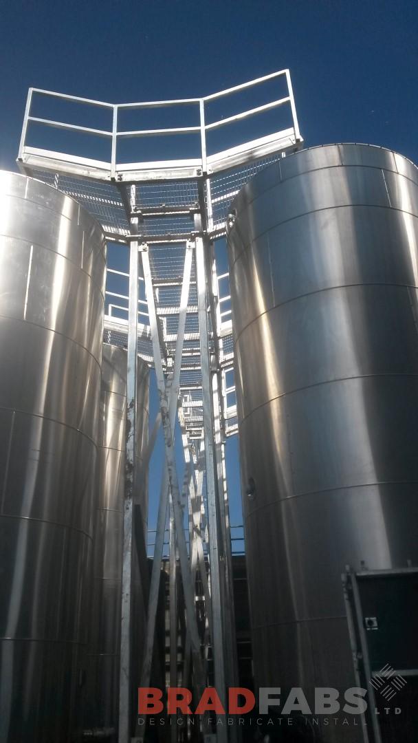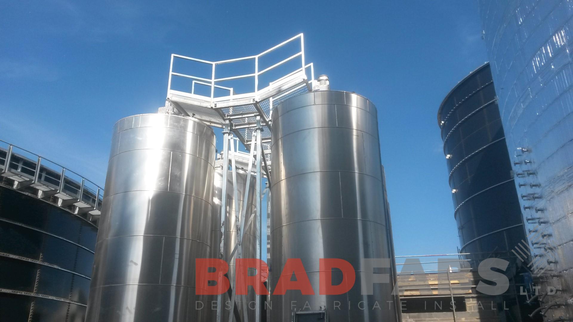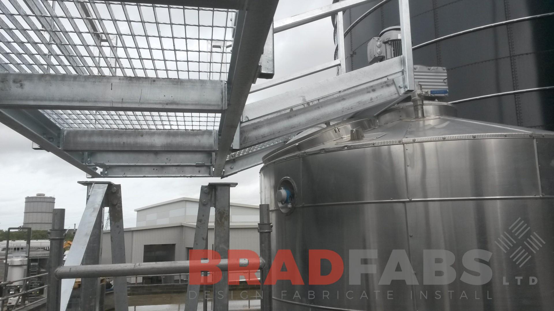 Bradfabs designed and manufactured these industrial access an inspection tank walkways for a bio chemical company.