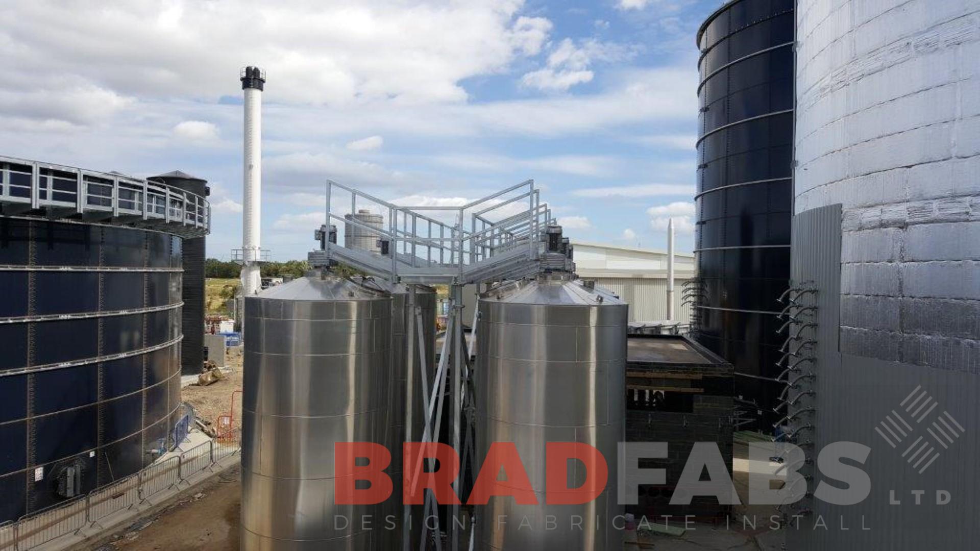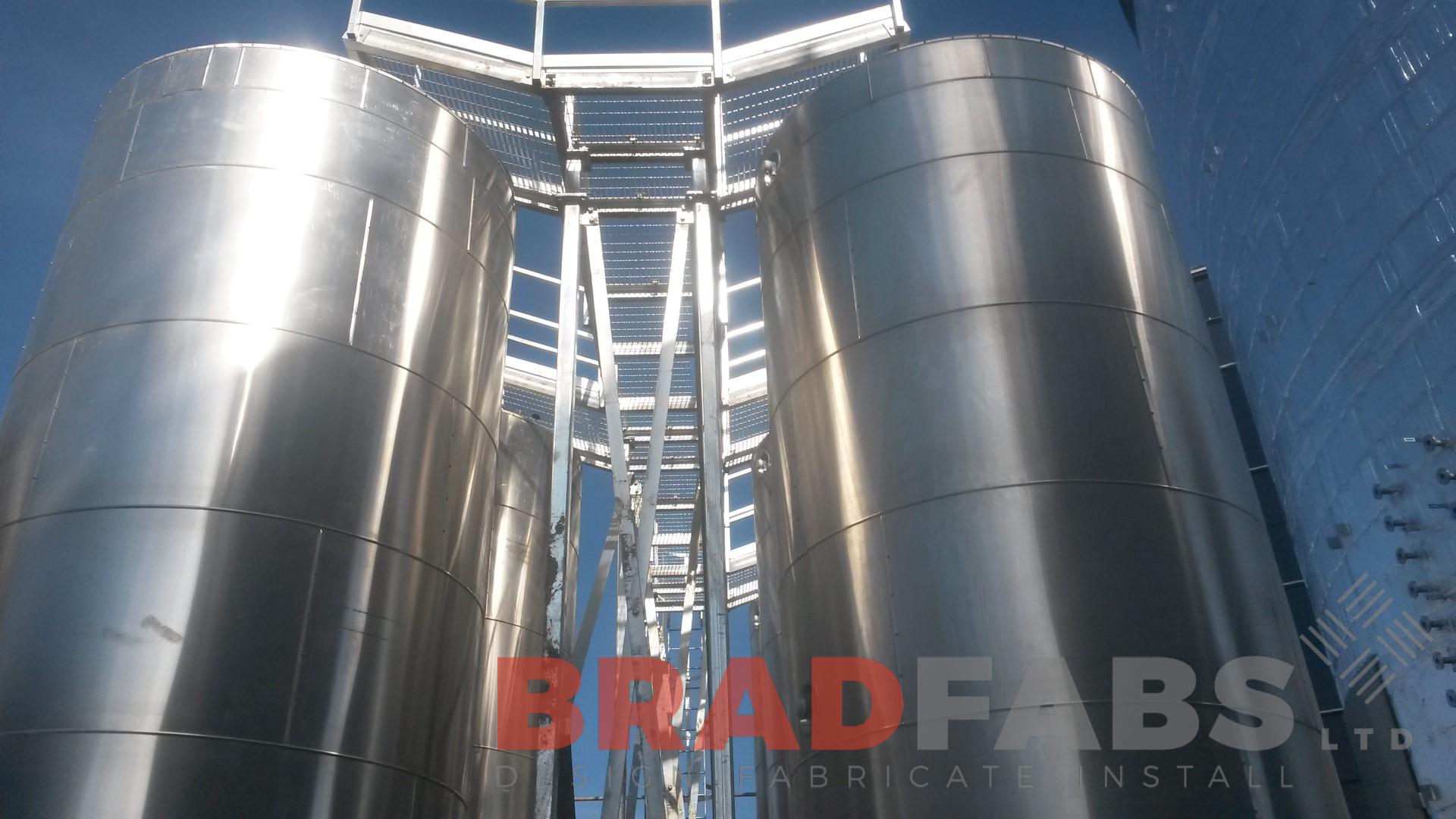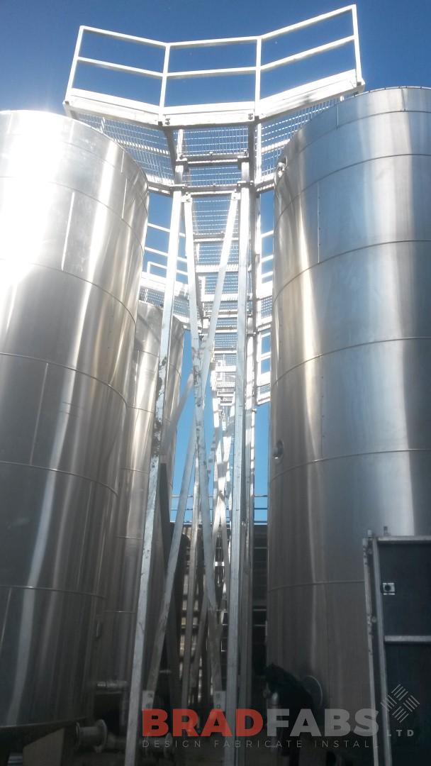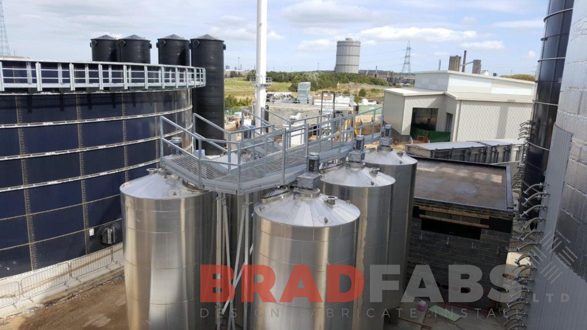 Bradfabs designed and manufactured these industrial access an inspection tank walkways for a bio chemical company.