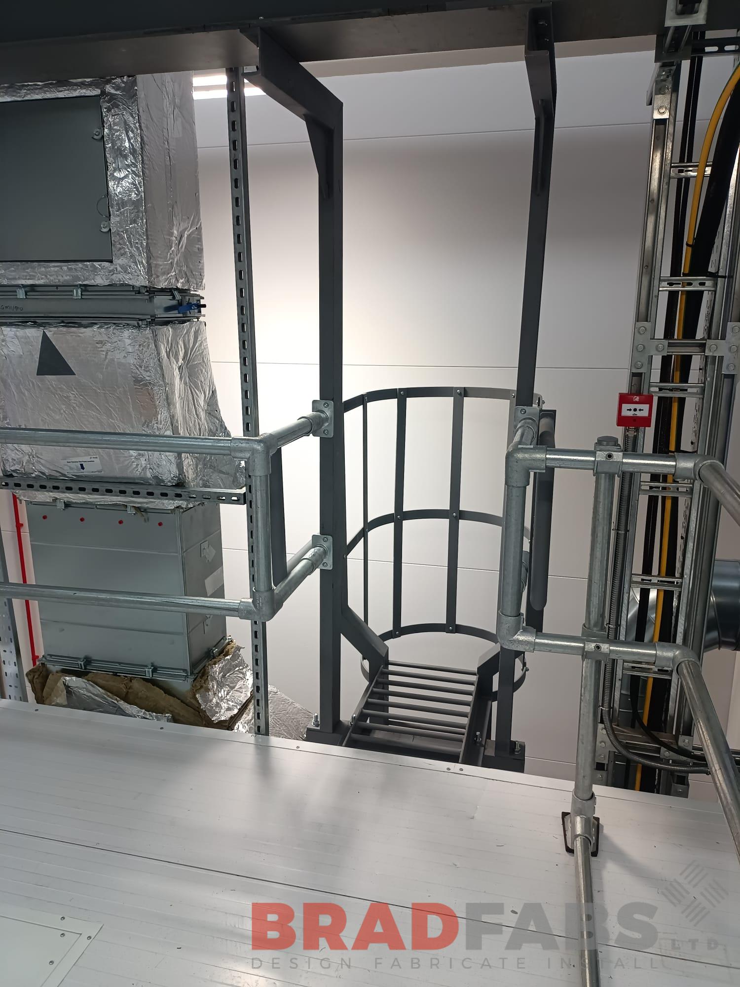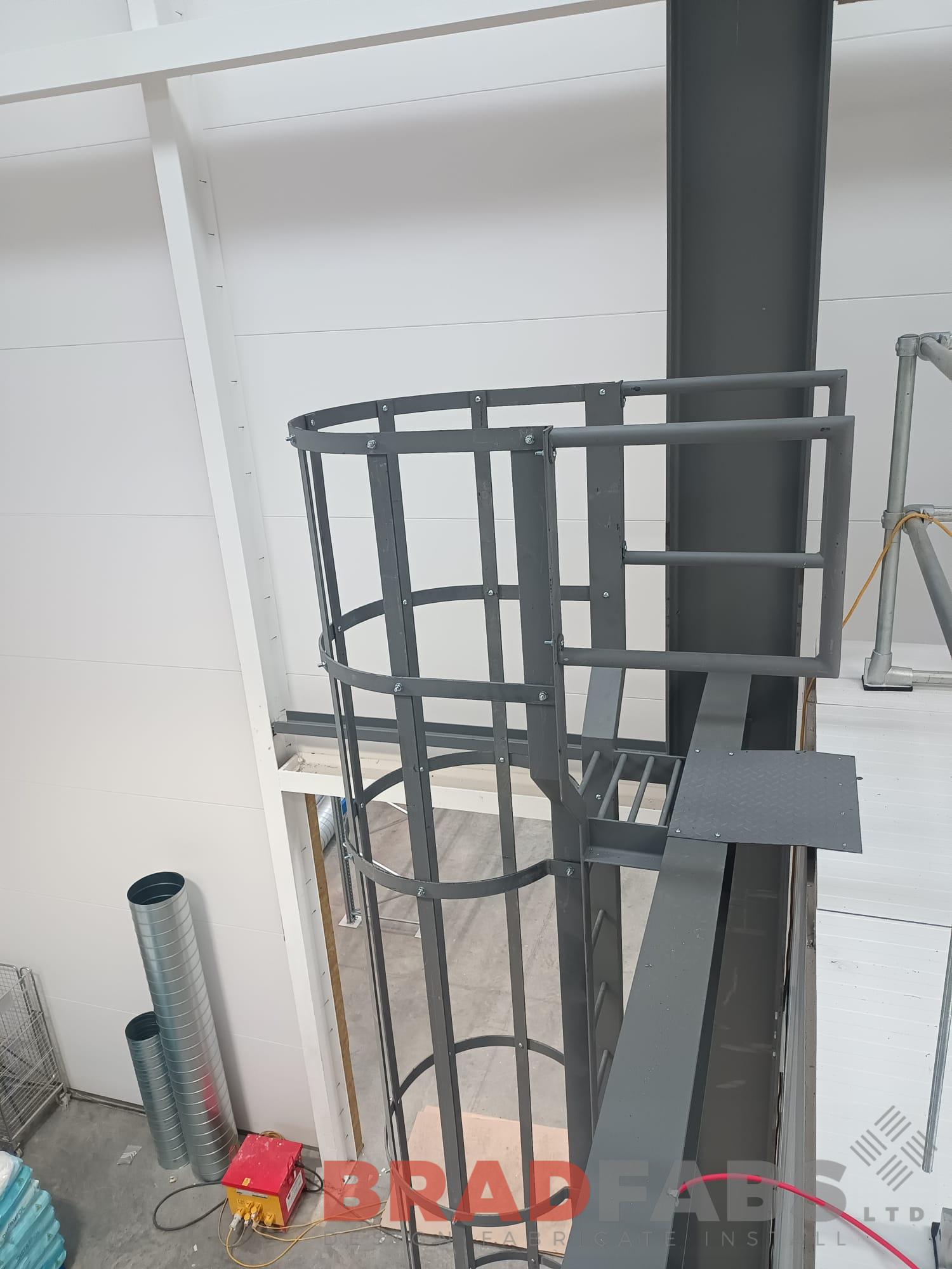 9 cat ladders designed, supplied and installed by our team for an internal industrial unit. Mild steel and powder coated gray.