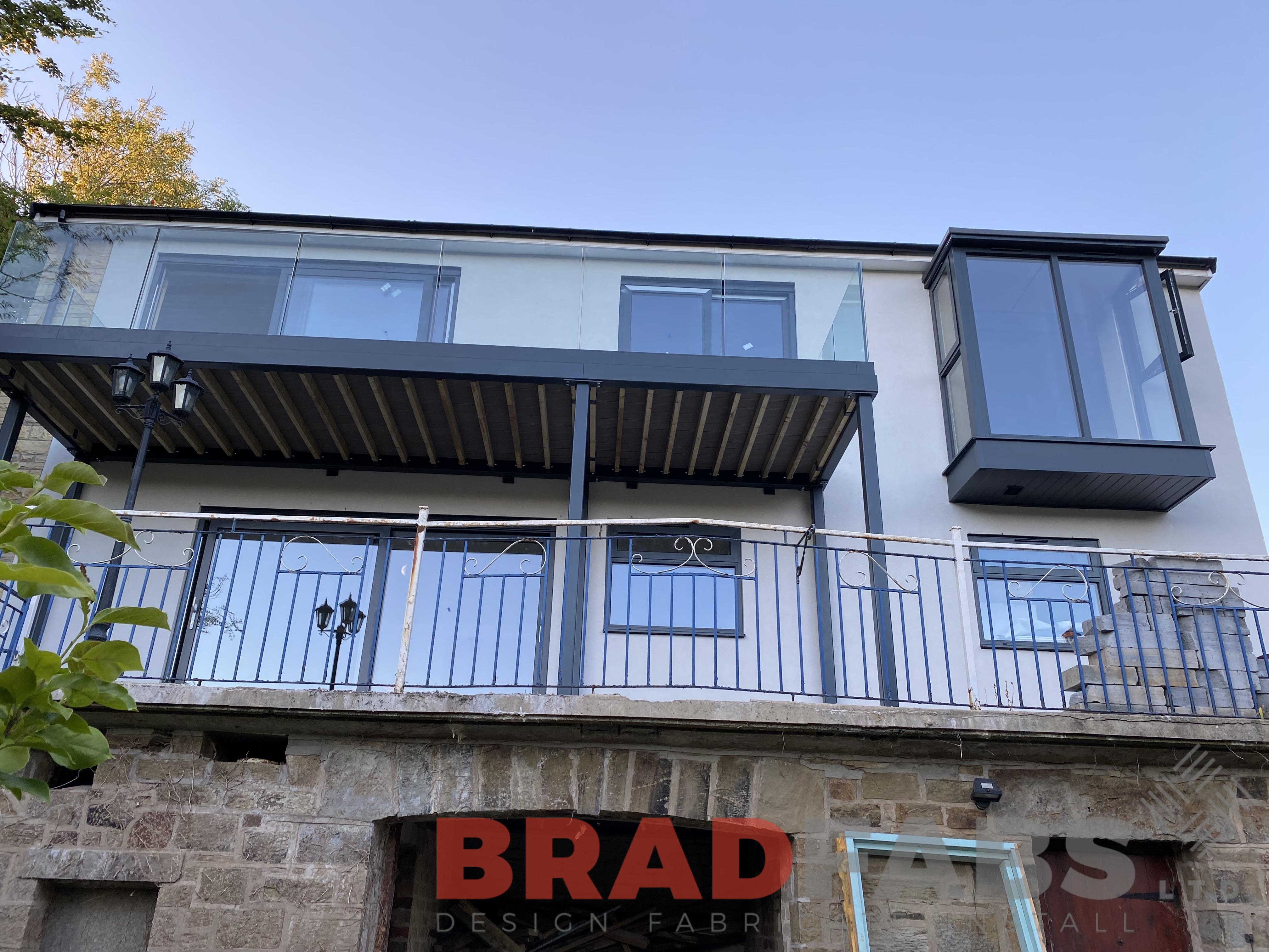 Bespoke Balcony transformation. Old wooden Balcony to large steel balcony structure with channel system infinity glass