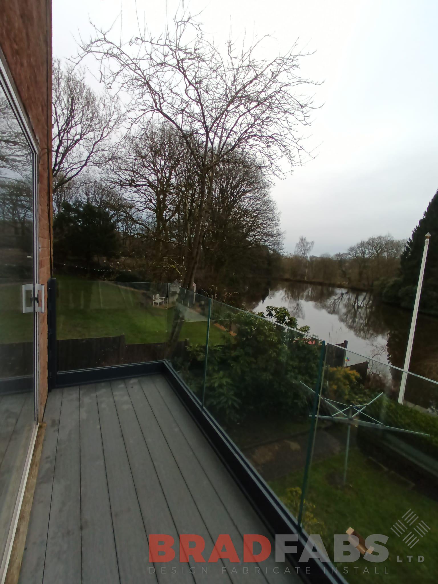 Cantilevered balcony with channel system infinity glass balustrade for a domestic property