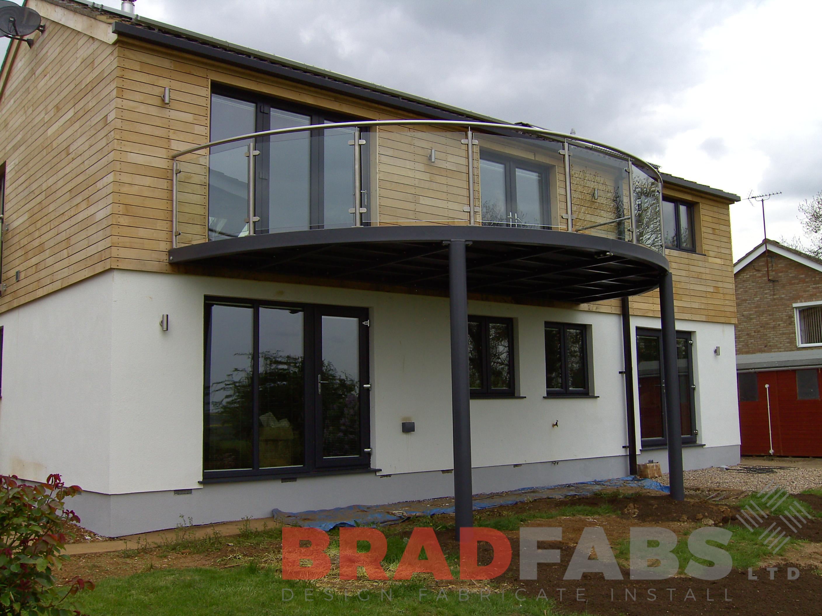 This panoramic large-scale semi-circular balcony is a galvanized and powder coated structure fabricated in stainless steel with toughened glass balustrading. This balcony offers spacious external living space and amazing views in the Lakes