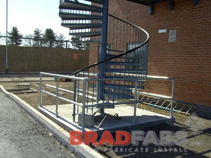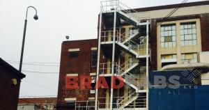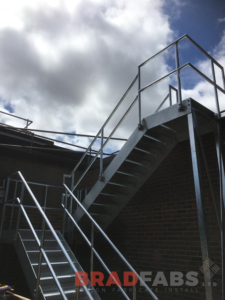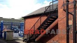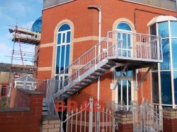 Another example of Bradfabs expertise in manufacturing fire escapes. This particular installation was tricky as there was a wall surrounding the building restricting lifting equipment.