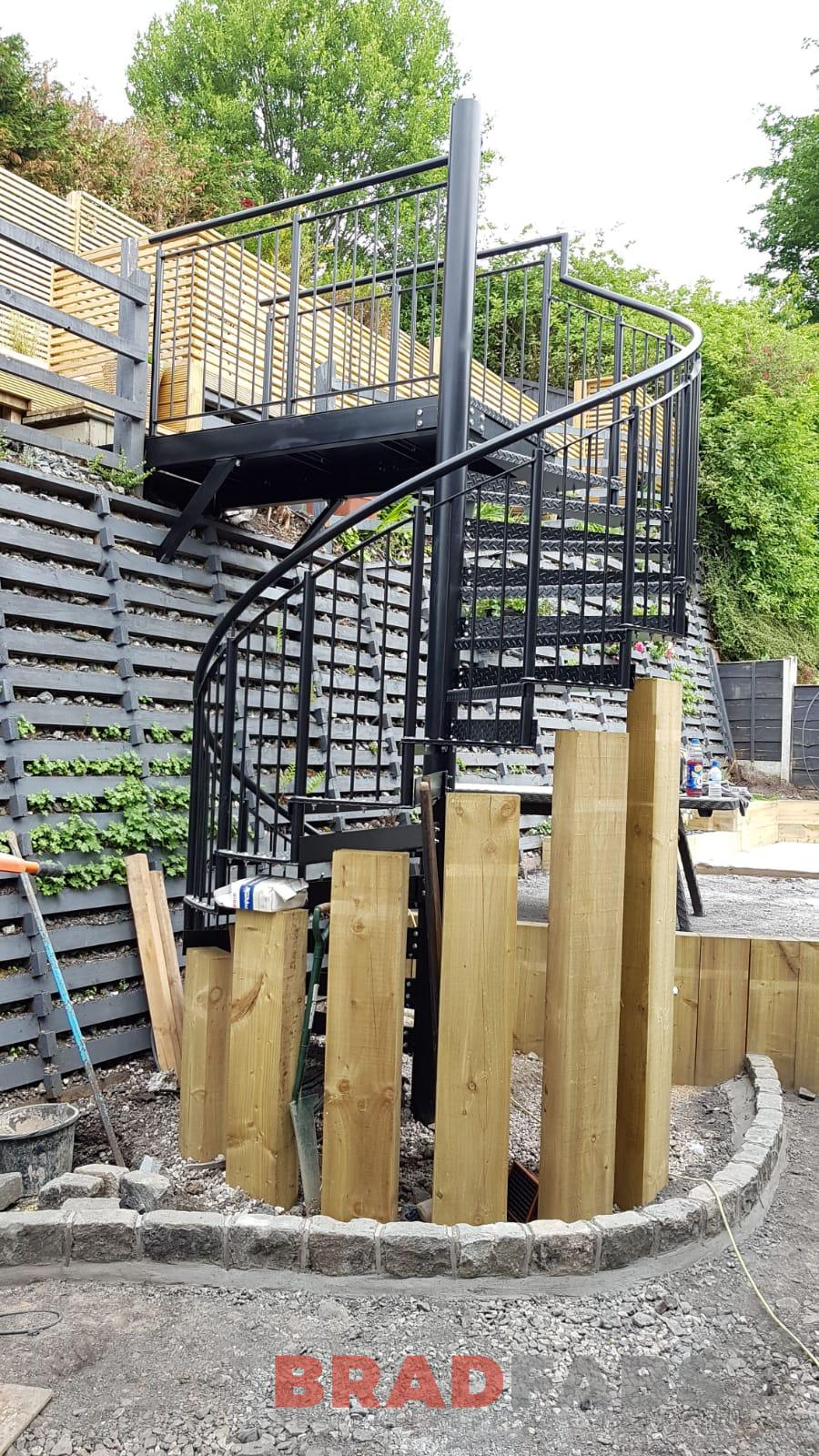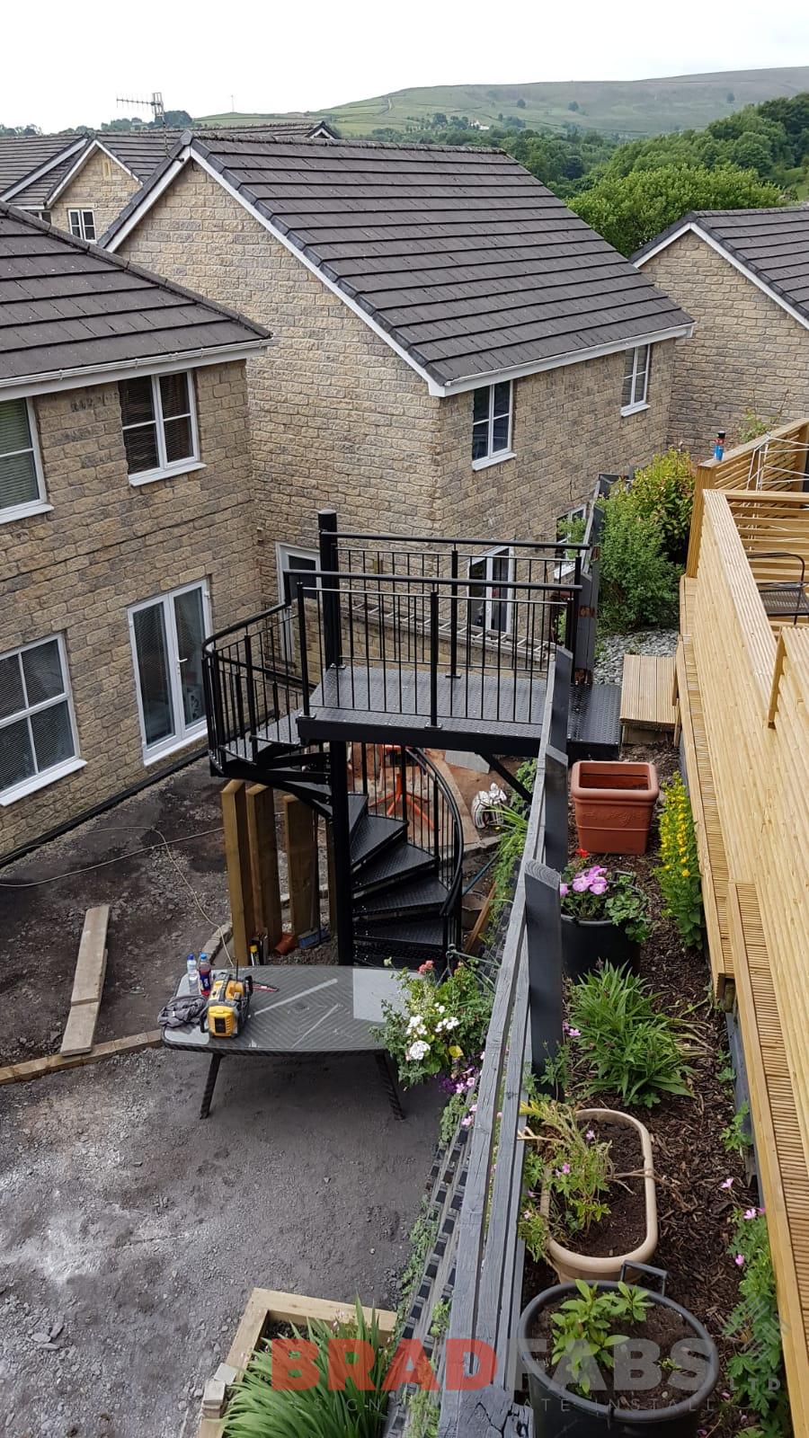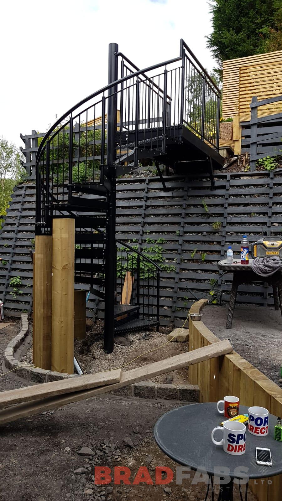 Bradfabs have designed, manufactured and supplied this mild steel, galvanised and powder coated spiral staircase for a residential customer to allow them to access a beautiful decked area in their garden.