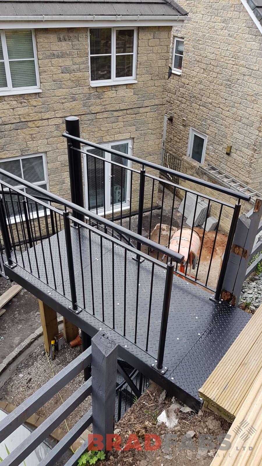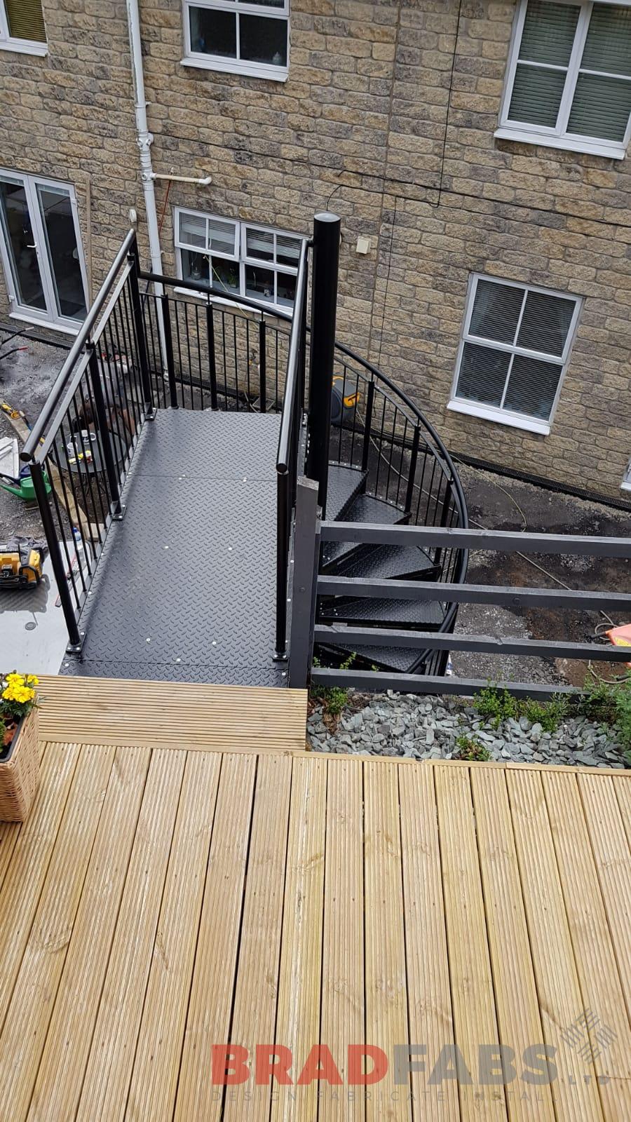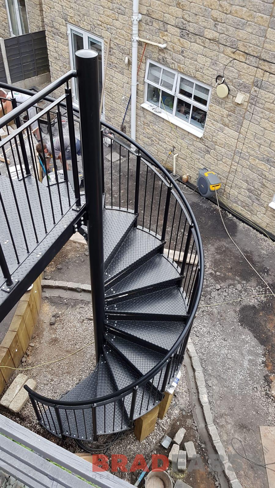 Bradfabs have designed, manufactured and supplied this mild steel, galvanised and powder coated spiral staircase for a residential customer to allow them to access a beautiful decked area in their garden.