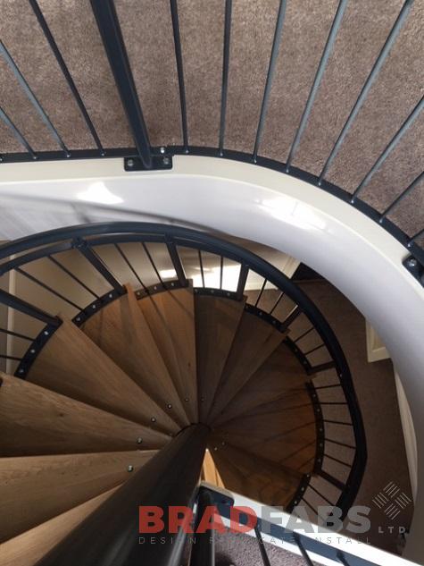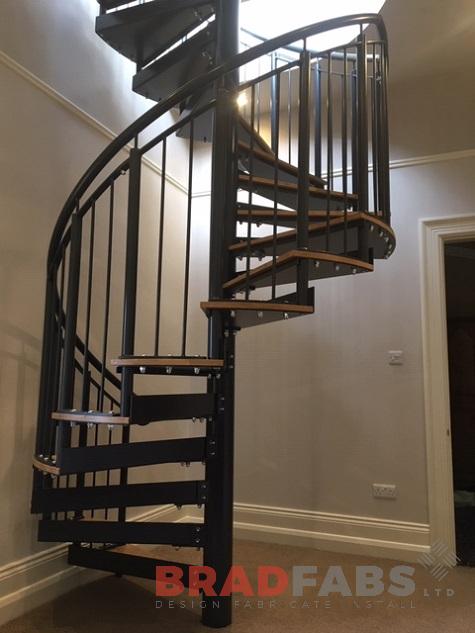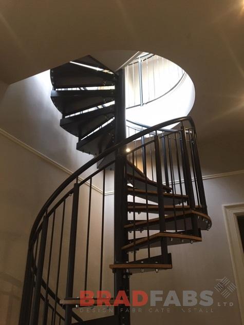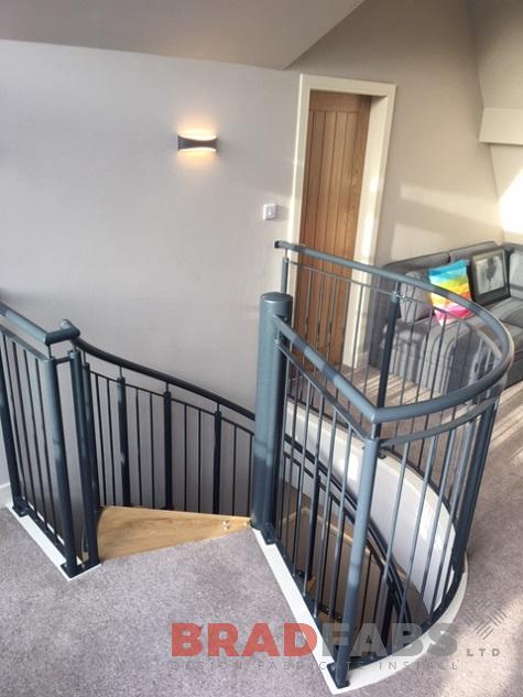 This modern spiral staircase was designed and fabricated for a residential property in West Yorkshire. The customer opted for vertical bar balustrade with a curved top landing, giving them access to their newly converted loft.