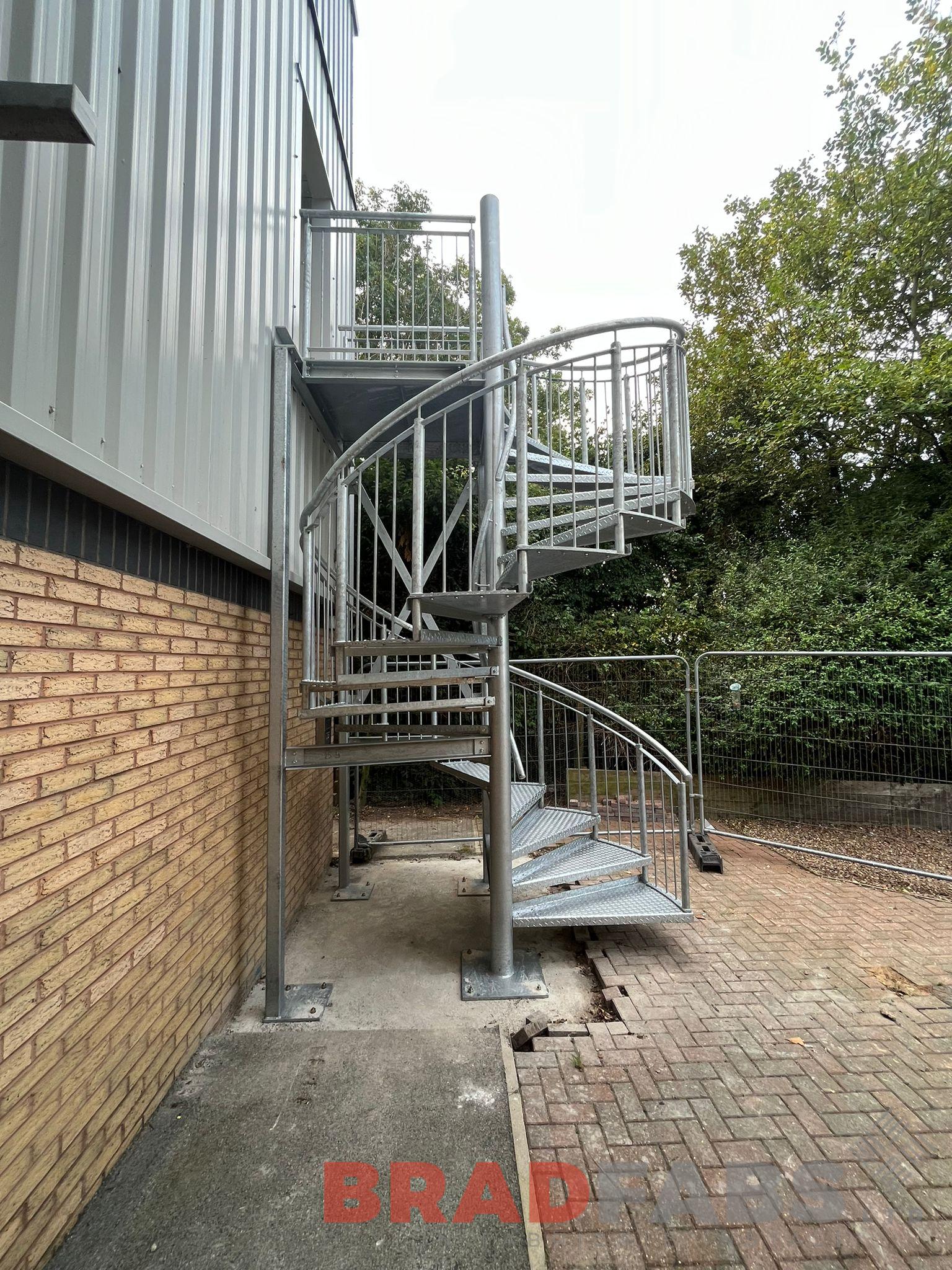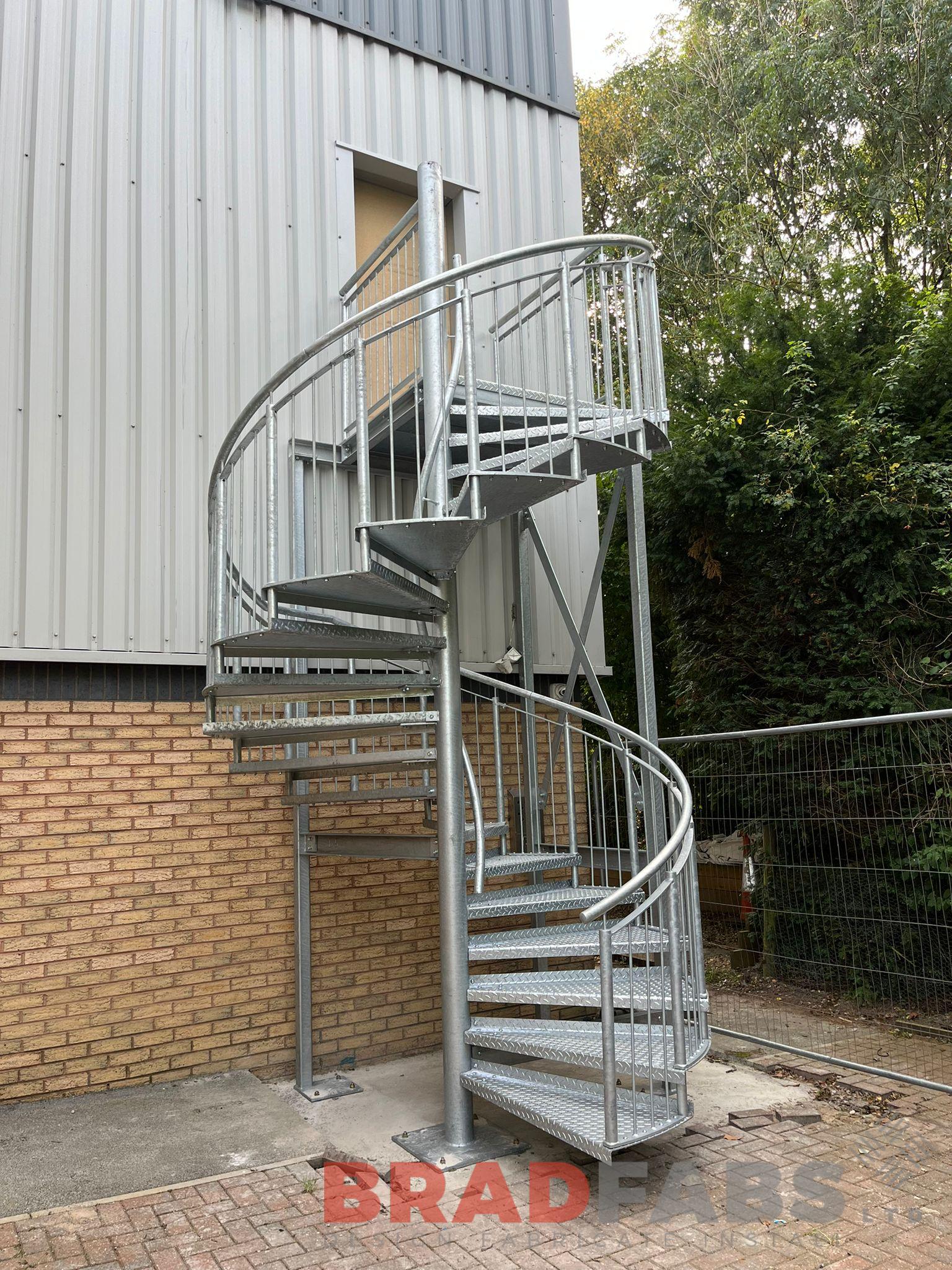 Bespoke external steel spiral staircase, galvanised and complete with durbar treads
