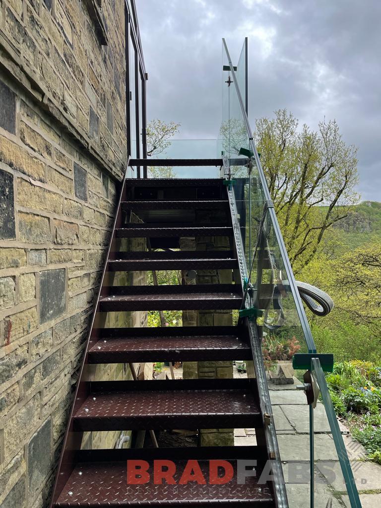External staircase manufactured in mild steel, galvanised and powder coated to colour of our customers choice