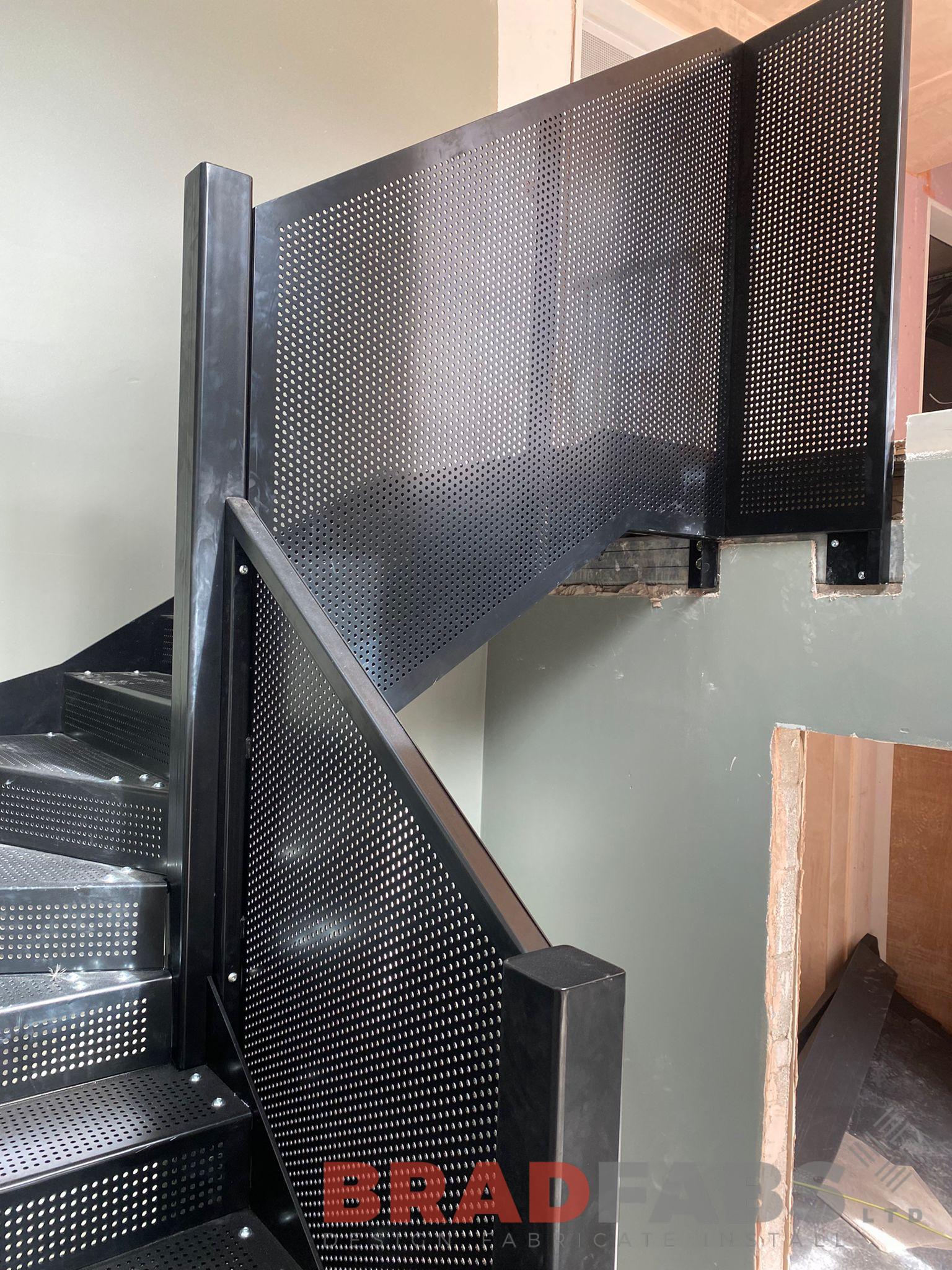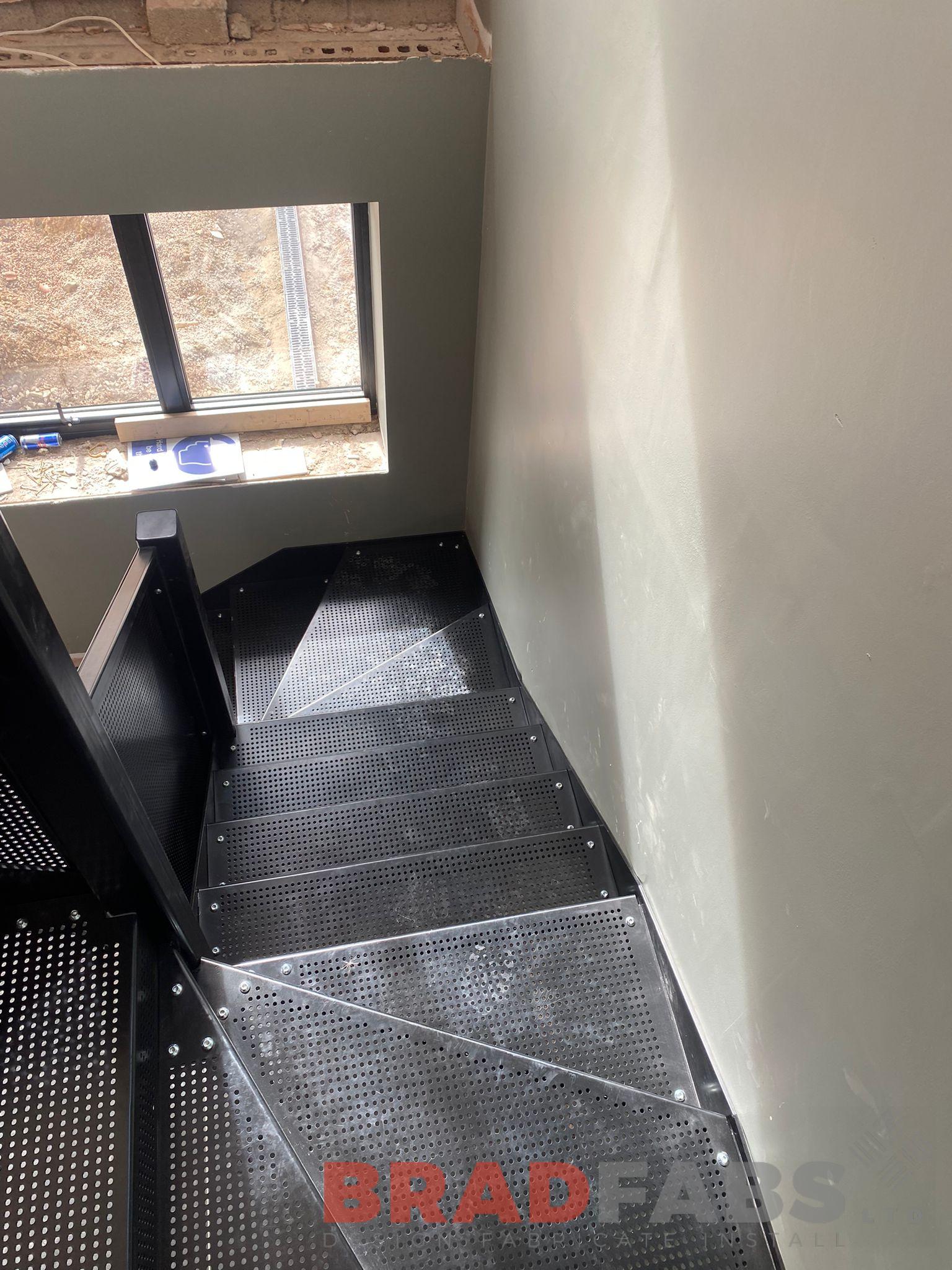 Bespoke perforated internal steel kite winder staircase