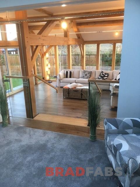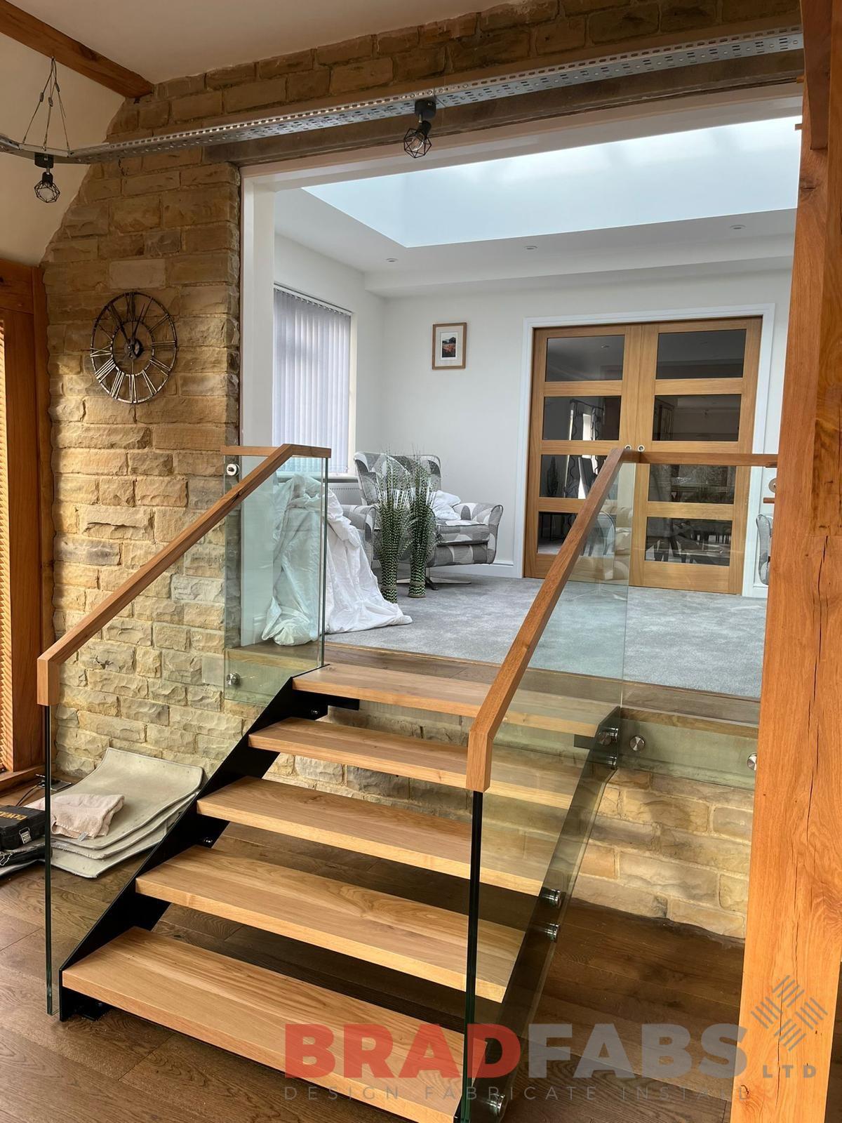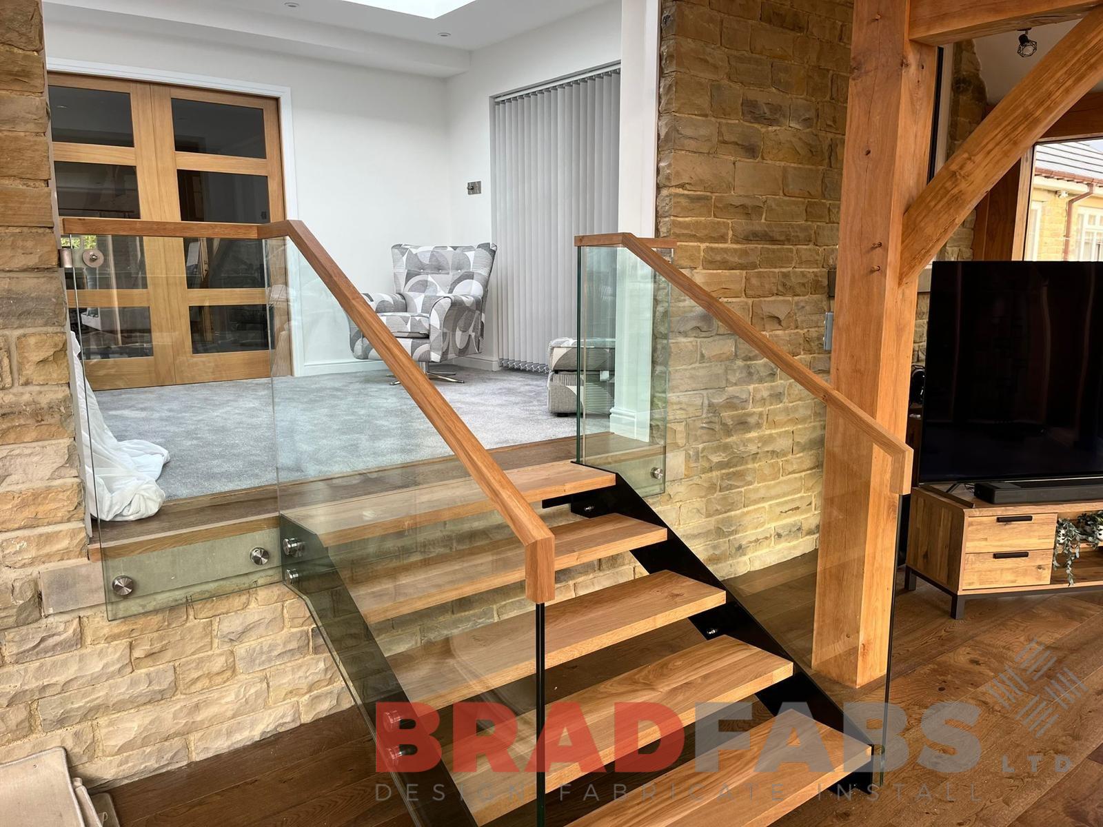1.2m wide small straight staircase with bolt on infinity glass balustrade and oak capping rail