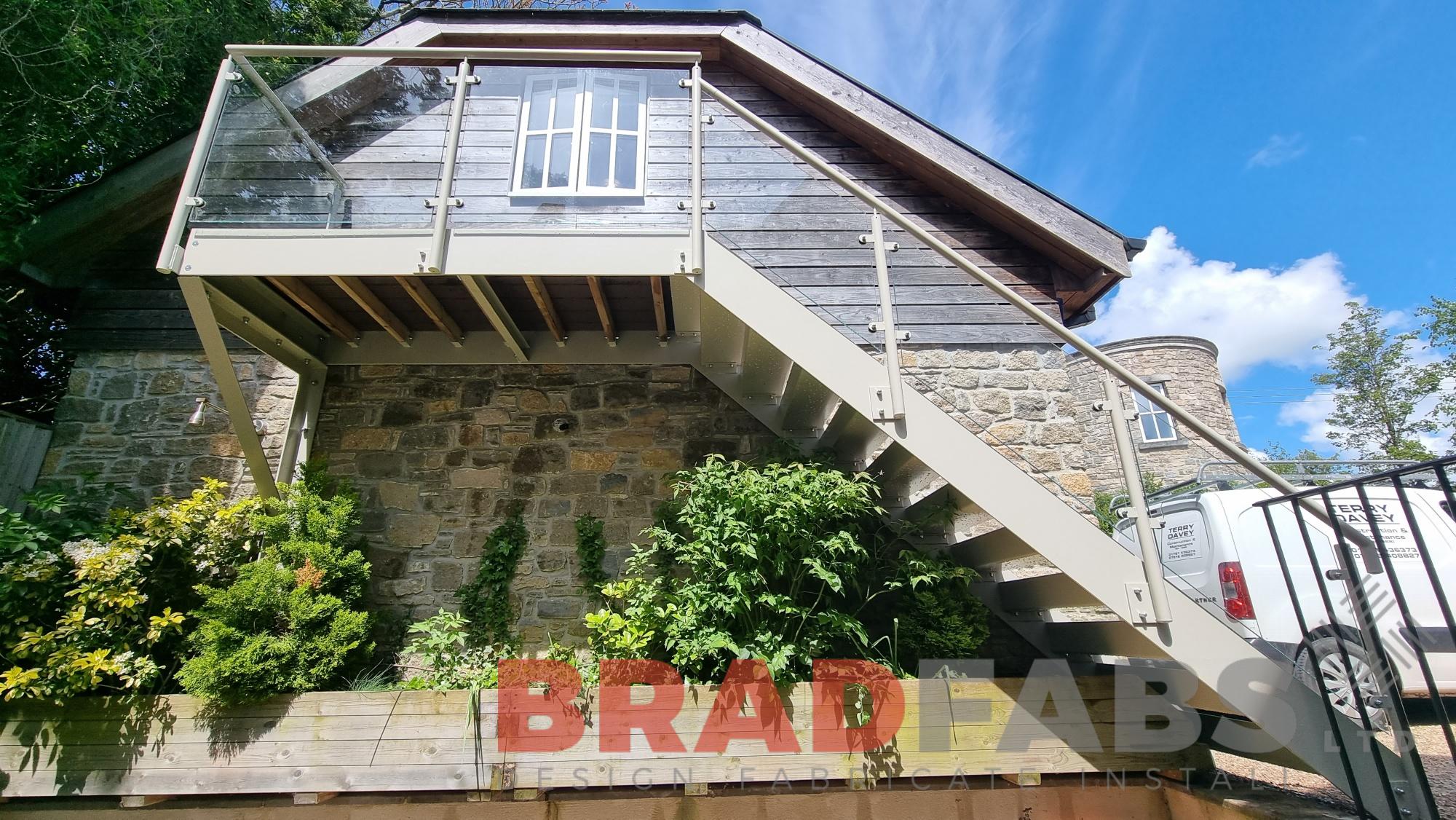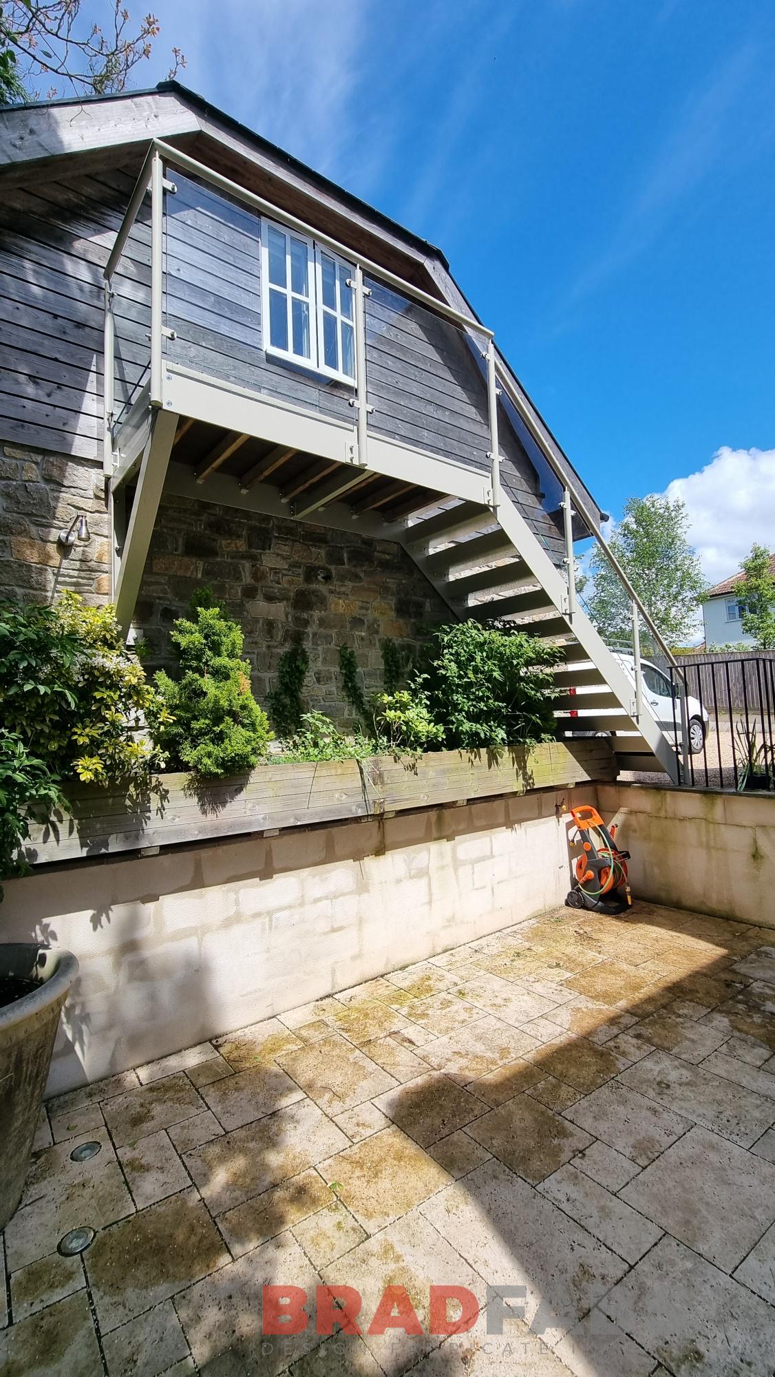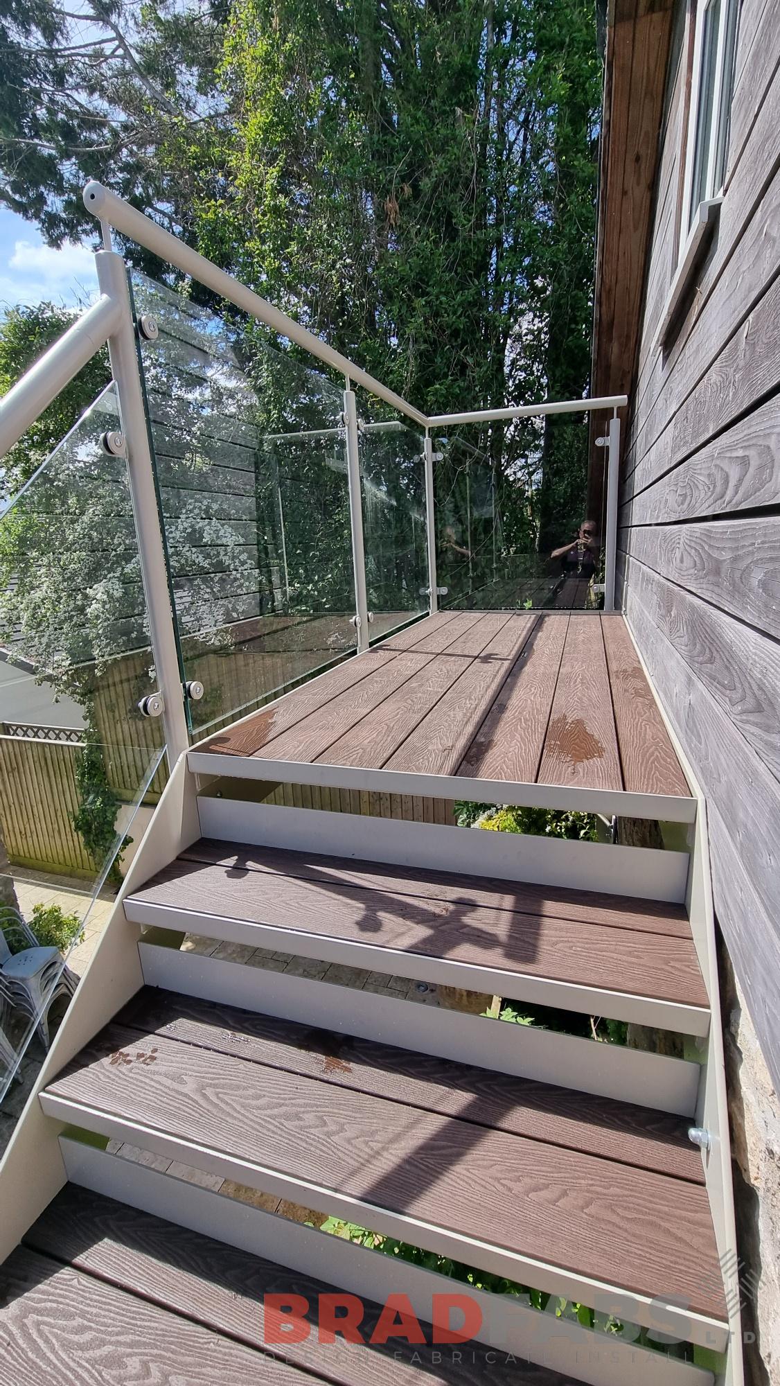 External staircase with steel and glass balustrade, complete with composite treads and landing