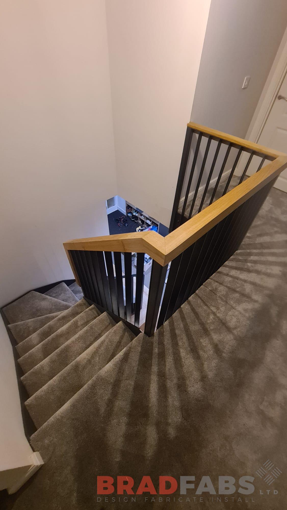 Stunning internal stair for a domestic property. With vertical bar balustrade and oak capping rail.