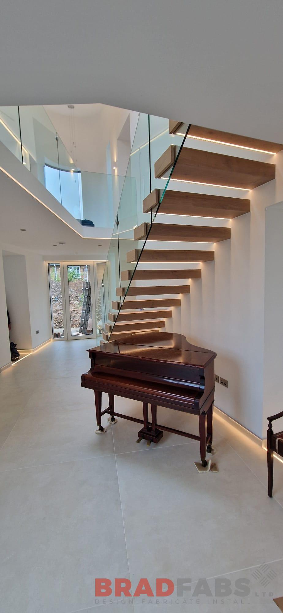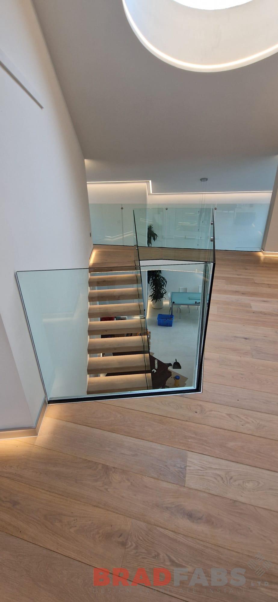 Stunning internal stair with additional glass balustrade on the landing to match the staircase