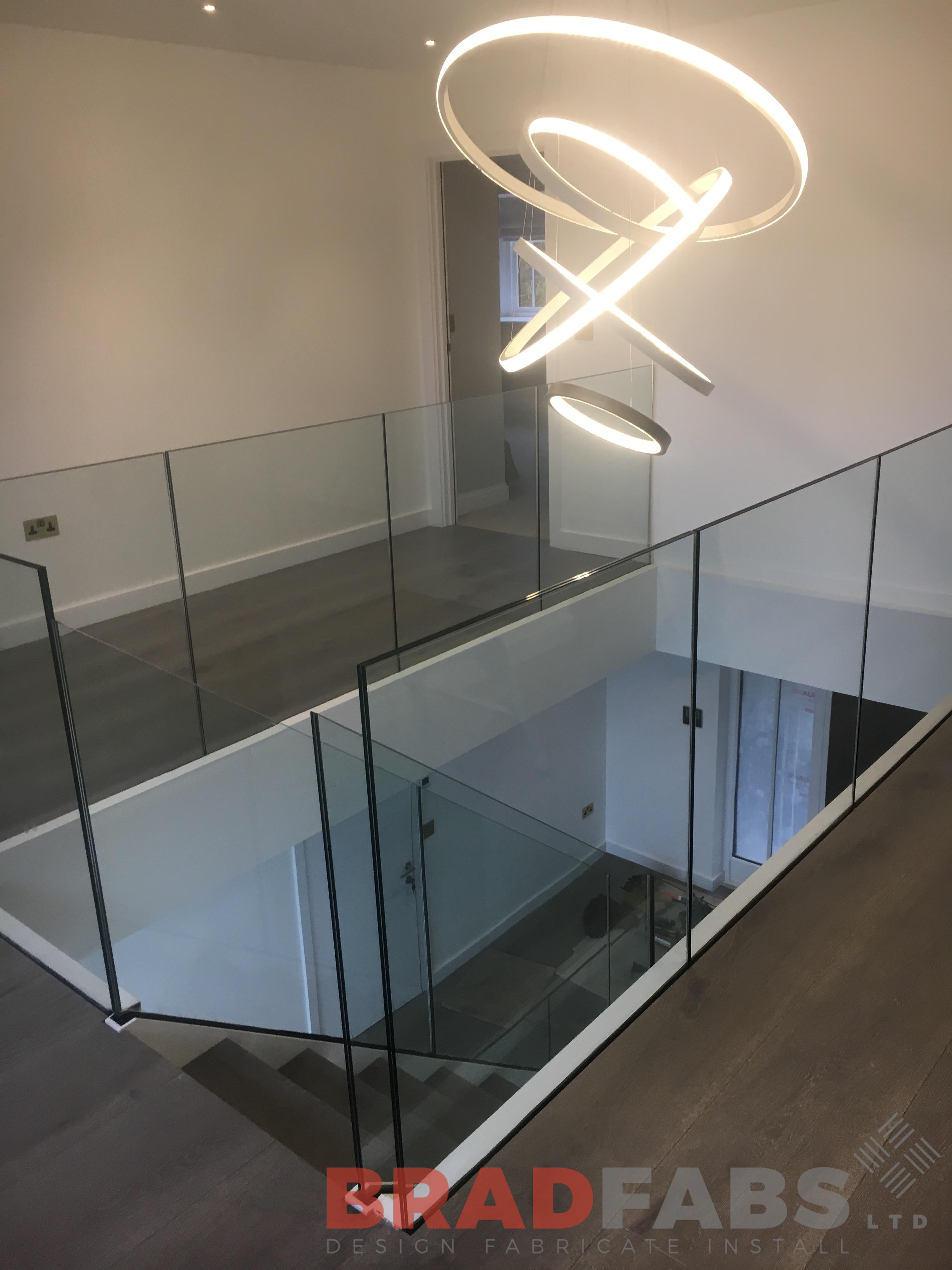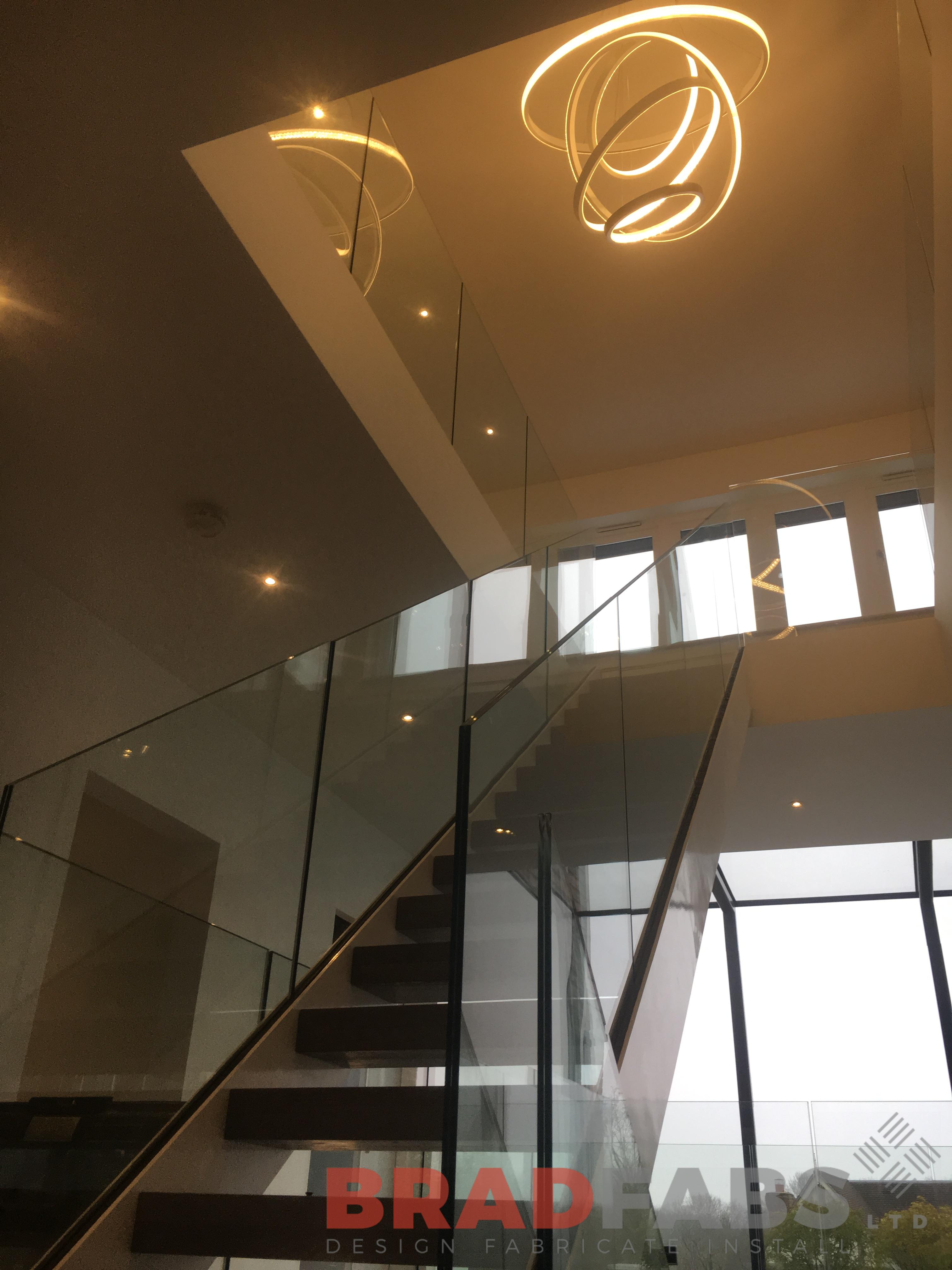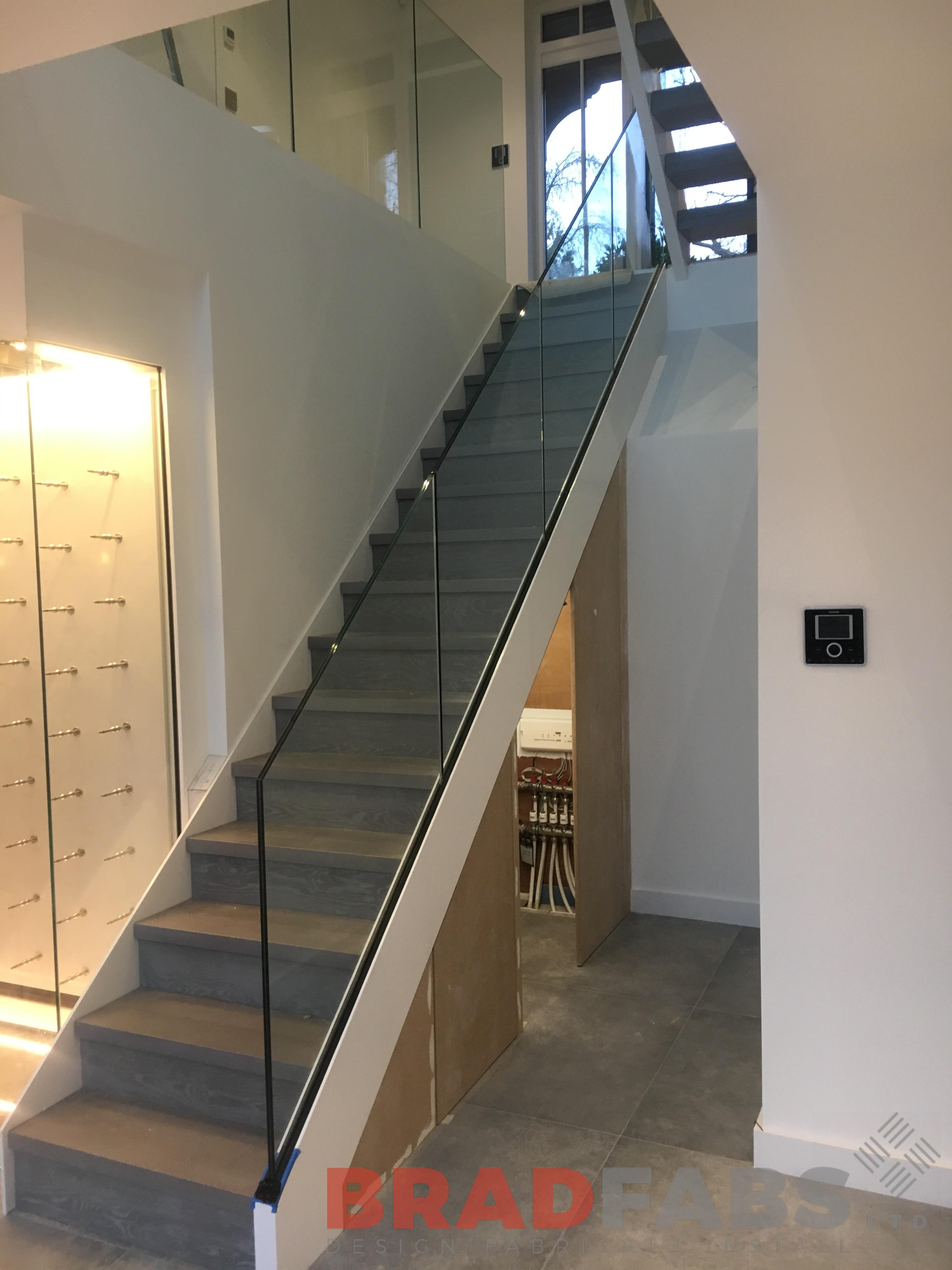 The second staircase is to access the cellar, again this has frameless glass balustrade but with closed treads.