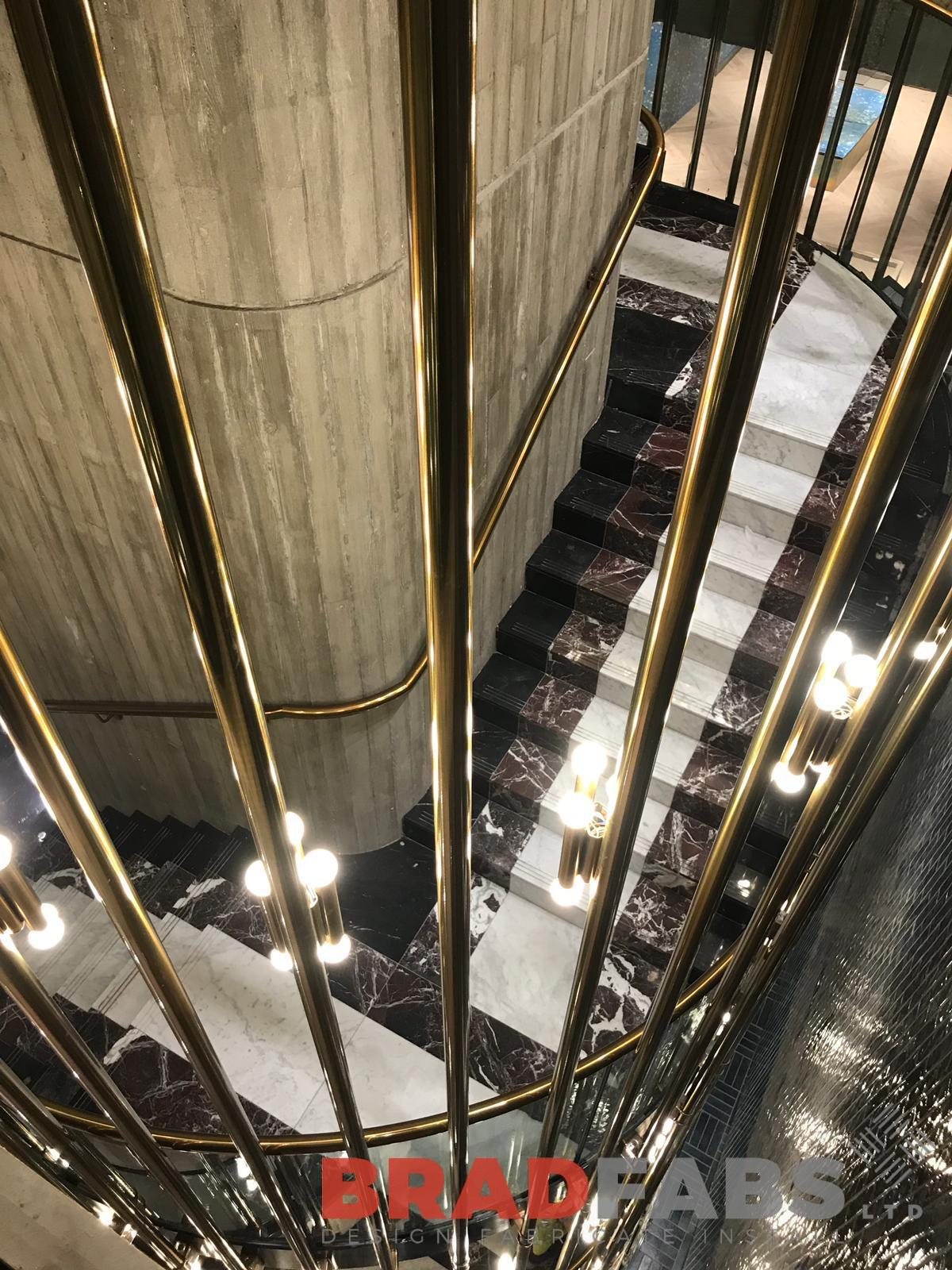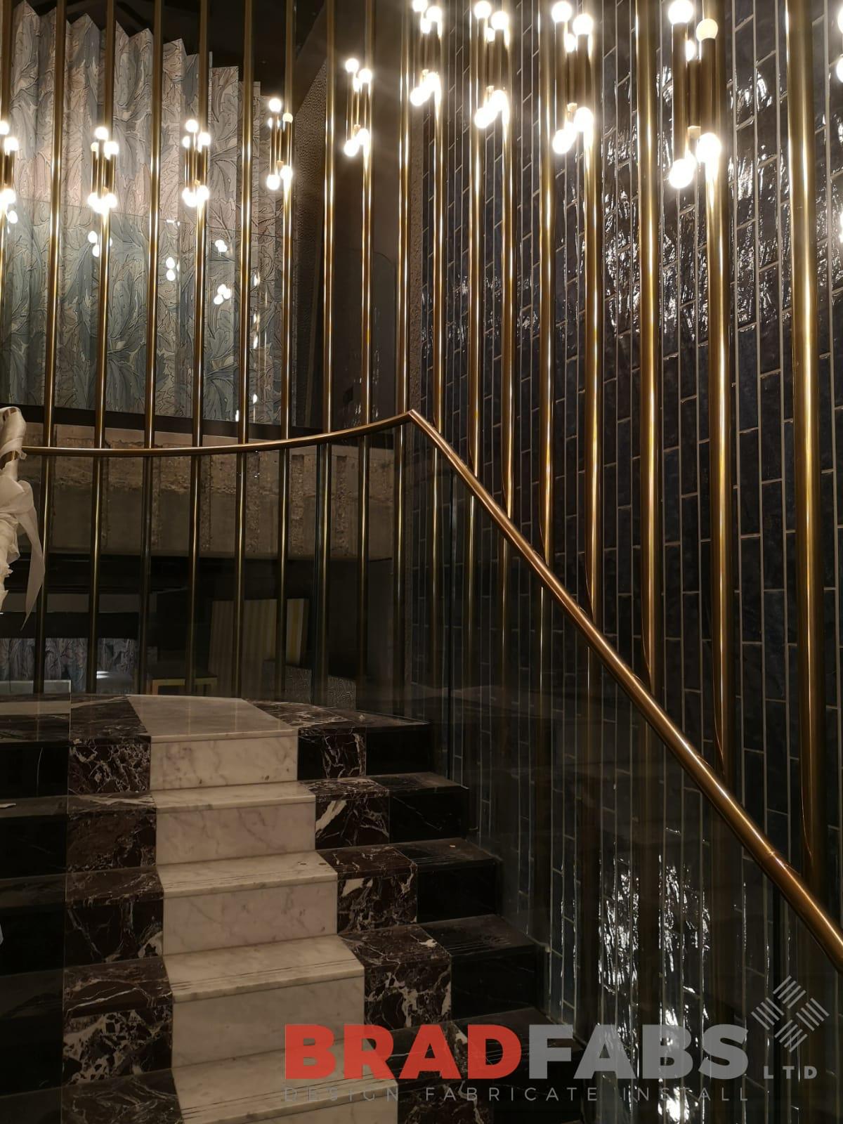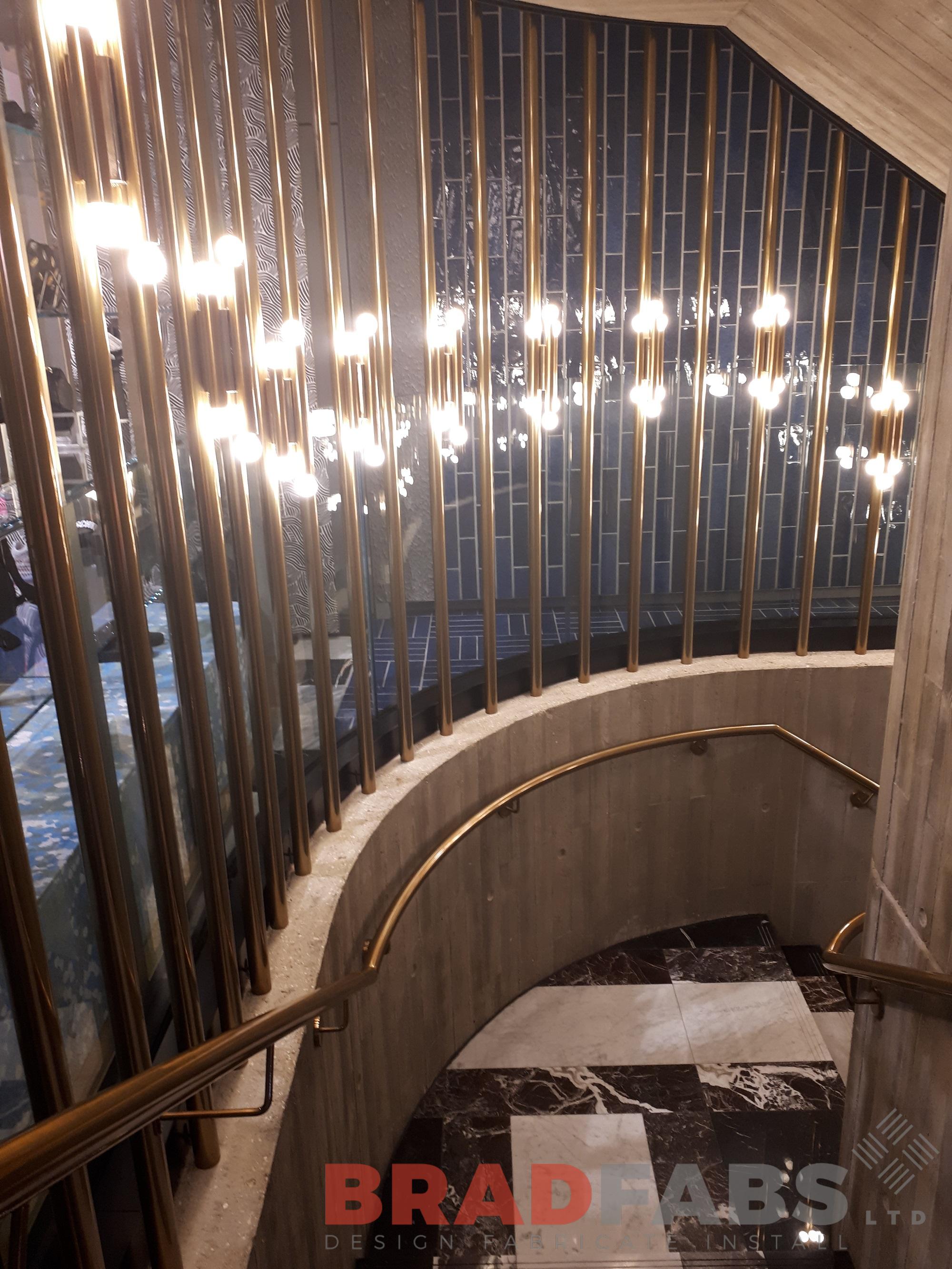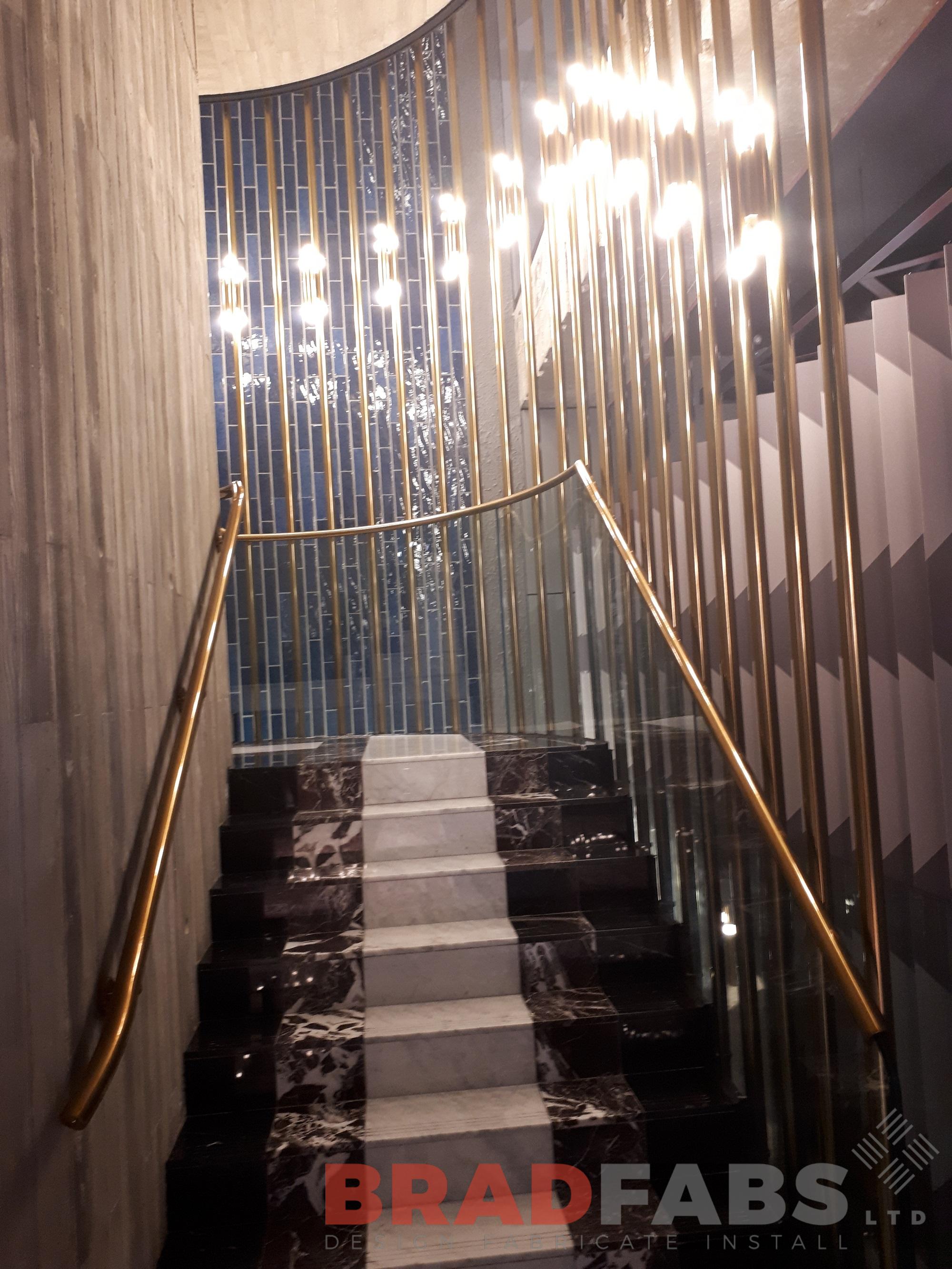 Italian design feature staircase for Flannels in London! A straight staircase with curved landing and a double stringer, what a fantastic feature staircase completed by the team!
