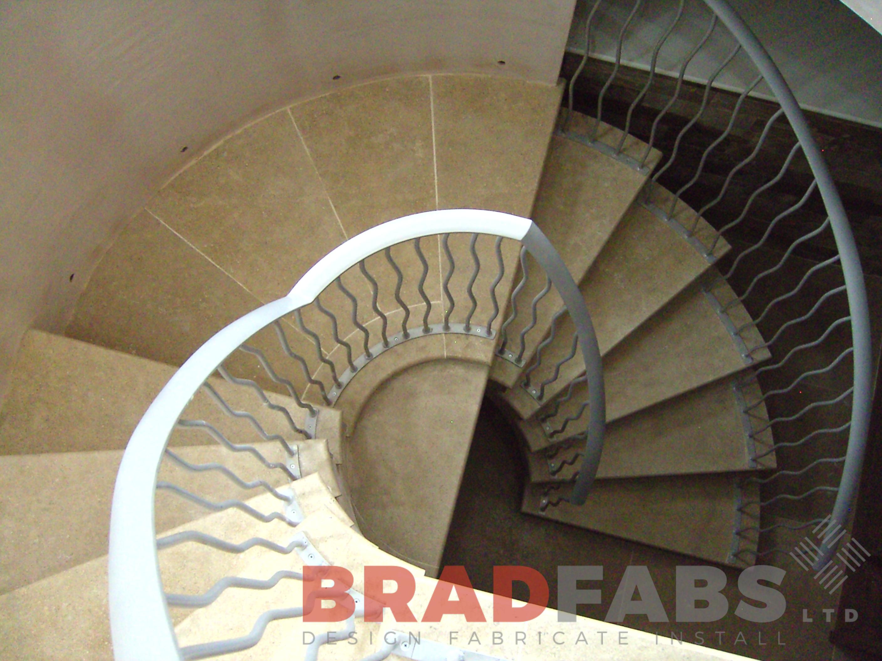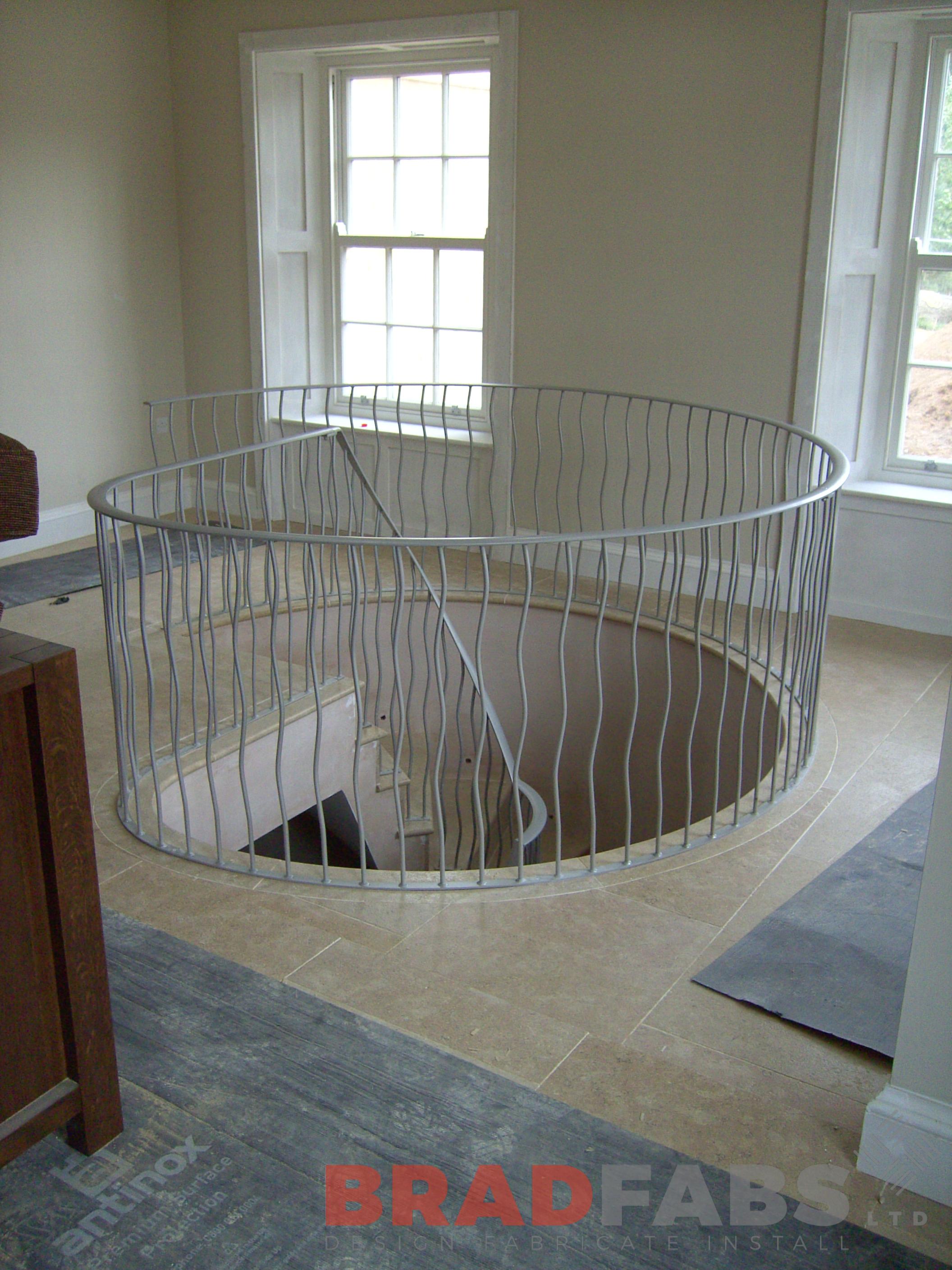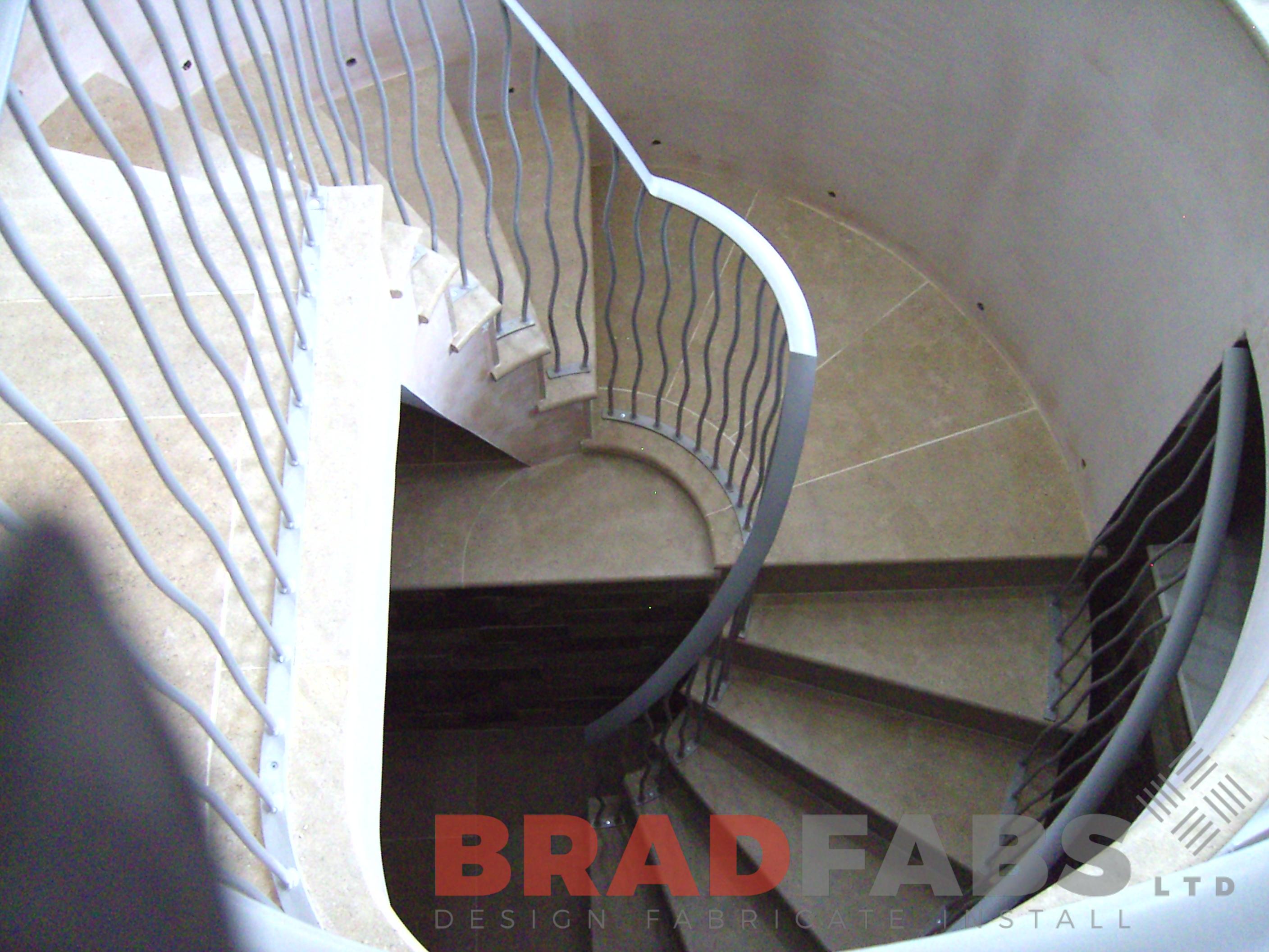 This African themed balustrade is simply manufactured using wavy steel bars, it is quite simple to manufacture and is more cost effective than glass especially on a curved staircase where the cost of curved glass can be triple.